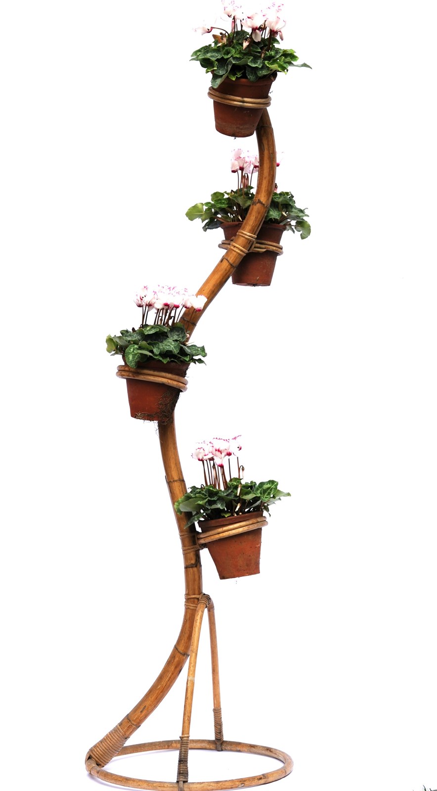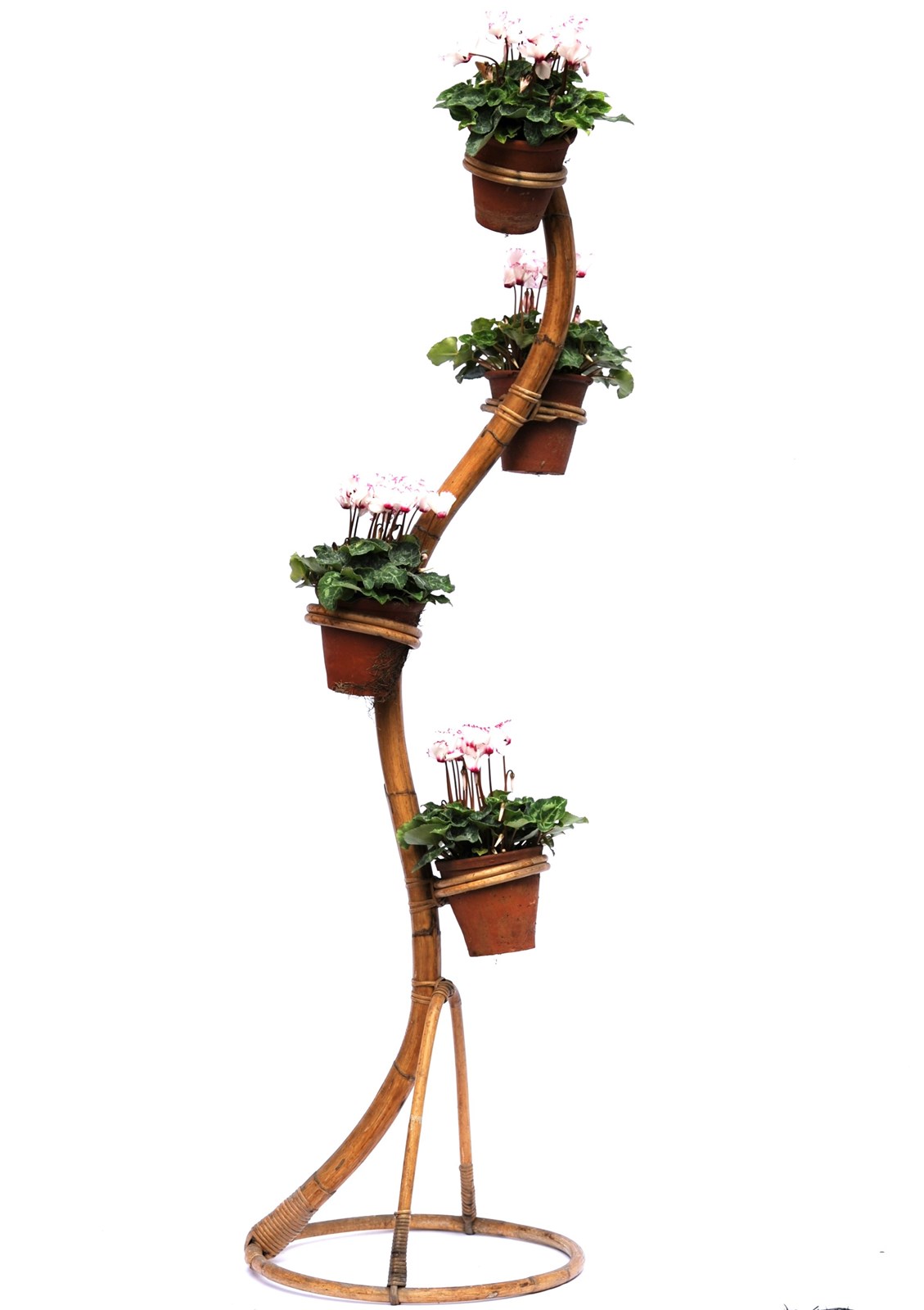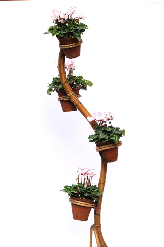Tall Rattan Plant Stand Vintage Mid 20Th C Furniture Bamboo Garden Flower Pot