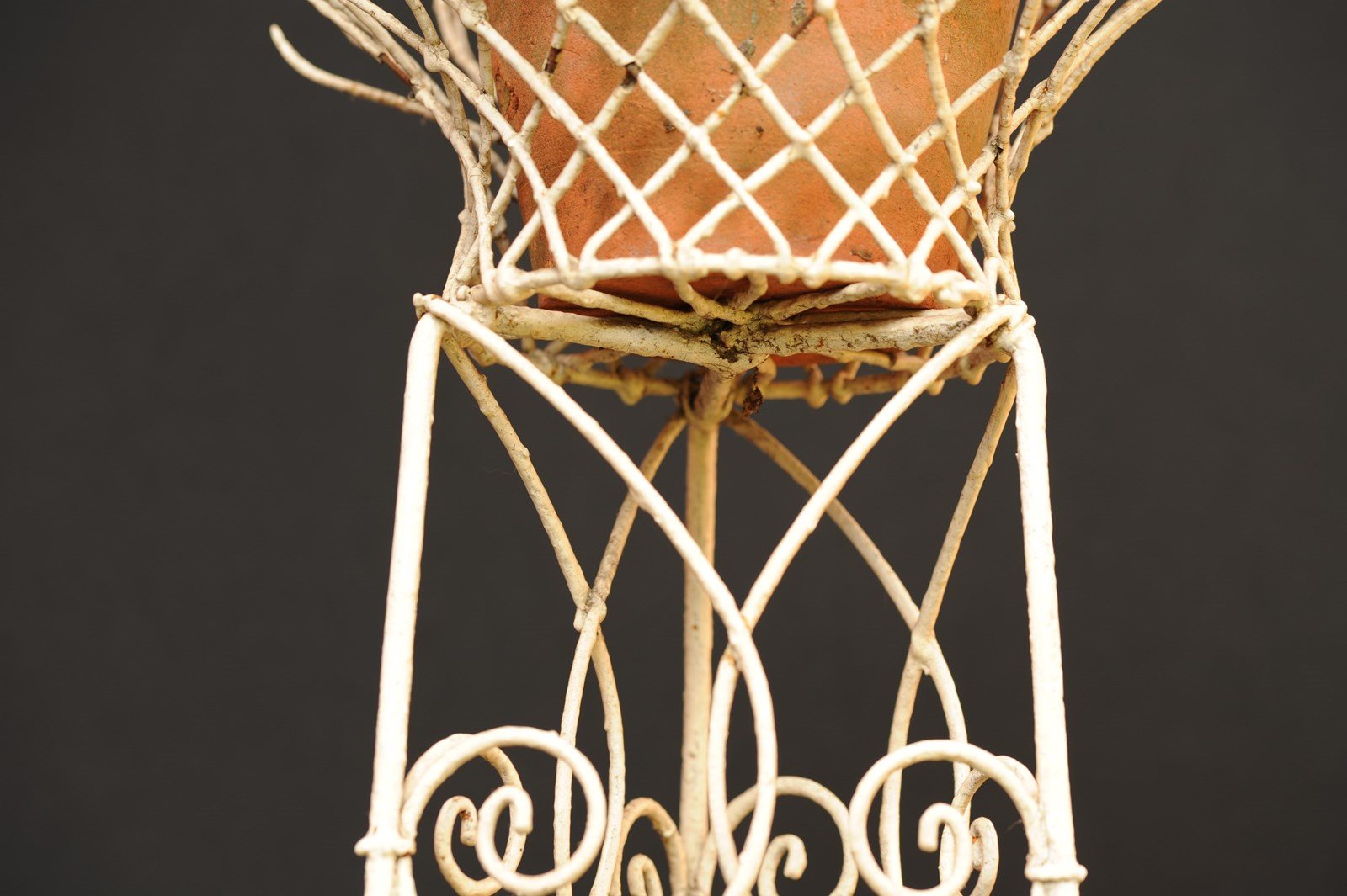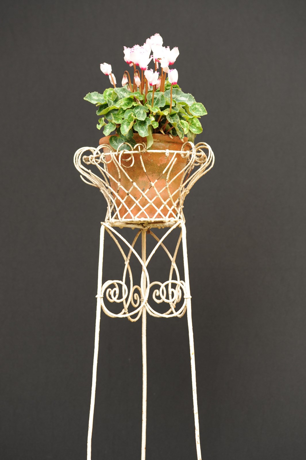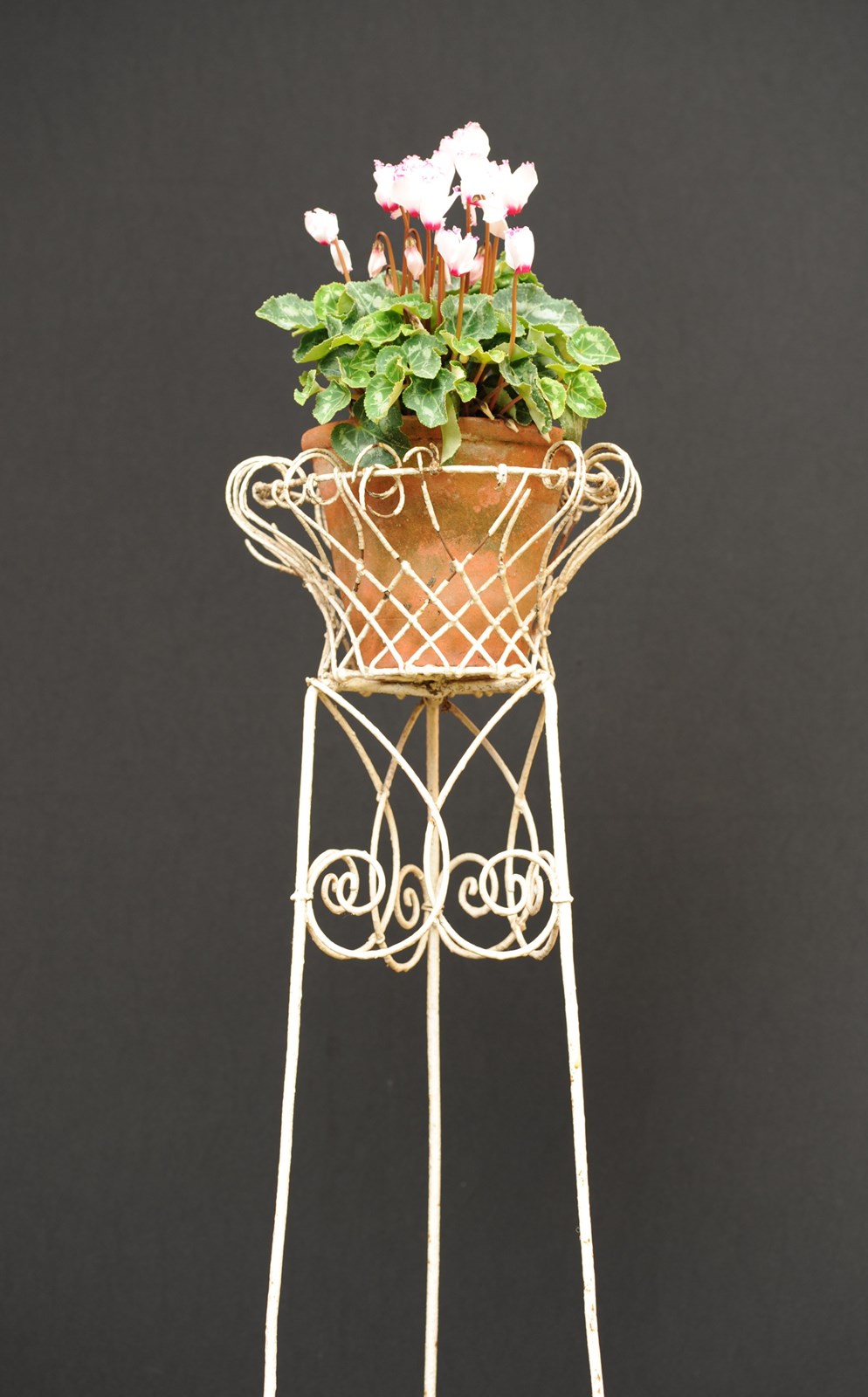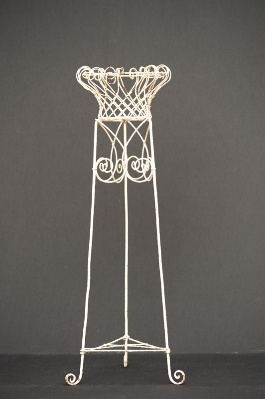 An exceptionally rare & elegant English Regency period wire work plant stand. Totally untouched and in its original white paint work. Some loses in places, mainly around the basket top, please see the images. The actual base stand area (basket bottom) is in good solid condition with no loses, as are the legs & the it stands firm & straight & is structurally sound. Approximate dimensions are 36 inches in height (91 cm). Basket 9.5" diameter & 5.5" deep, the feet span around 1 foot. Any questions please do not hesitate to ask, additional images are available on request. Free UK inland tracked delivery. Returns are happily accepted.