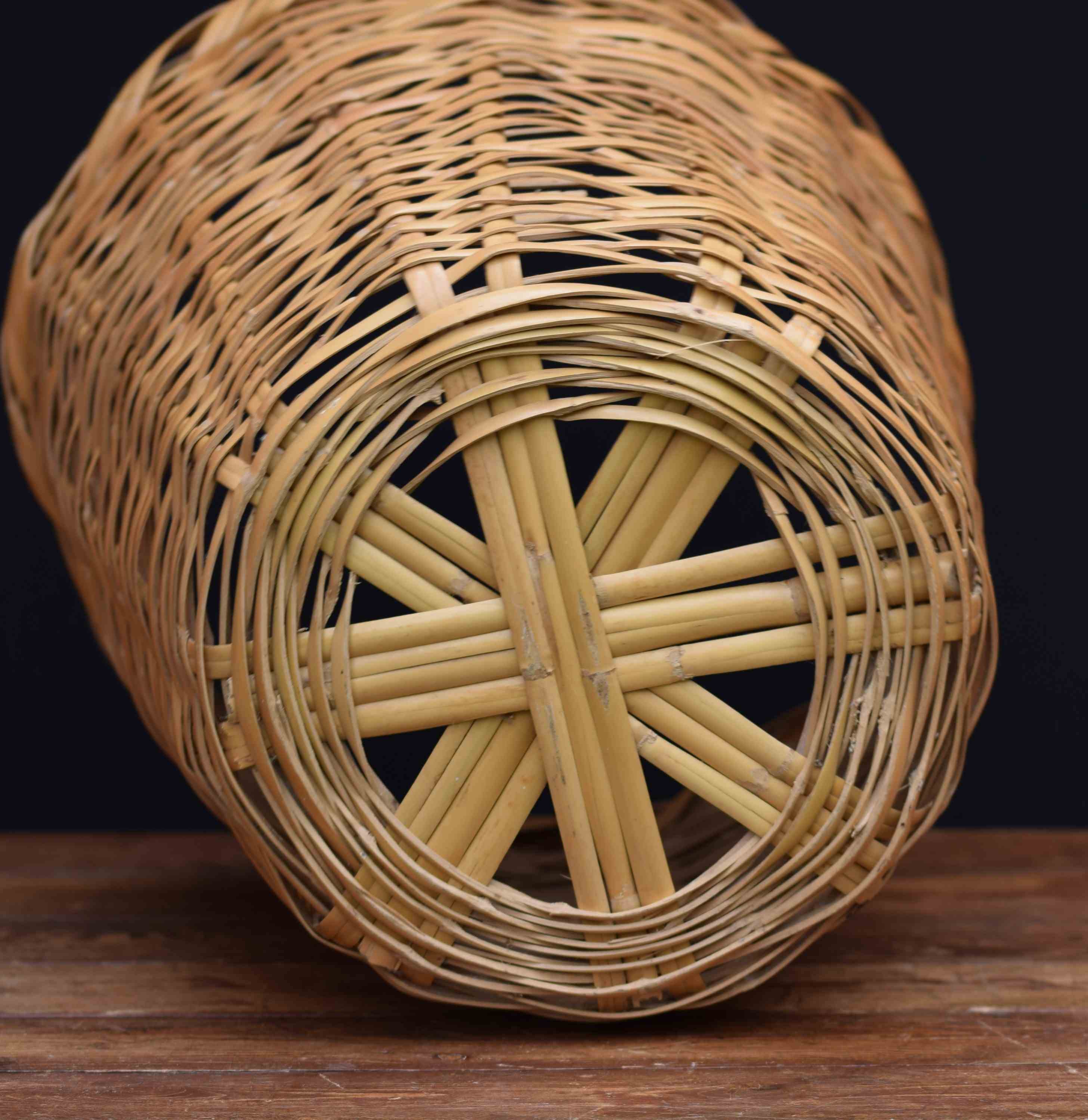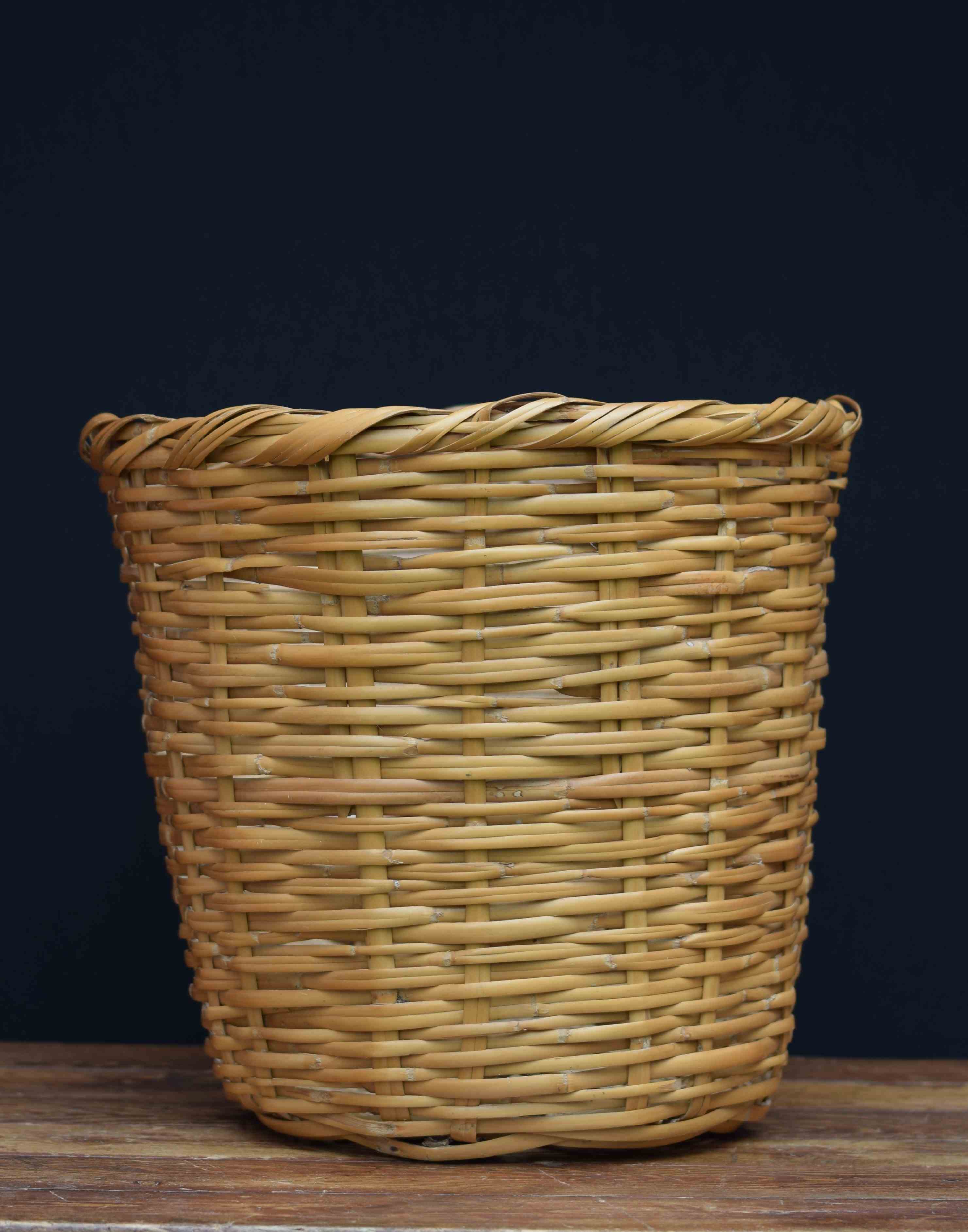 Bamboo Basket Round Vintage Plant Garden Laundry Bin Pot Waste Wicker Hand Woven