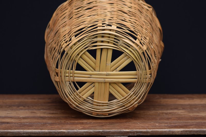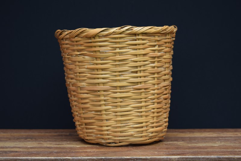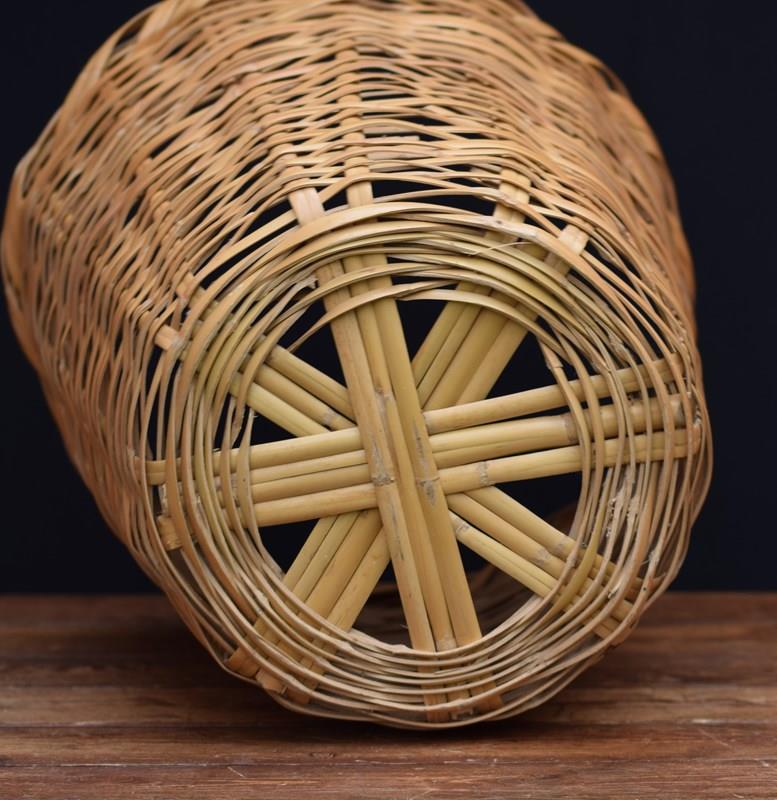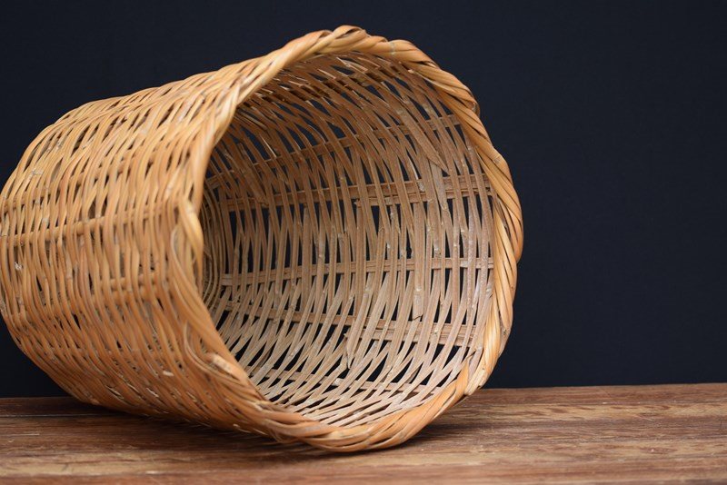 Vintage mid century round split bamboo woven basket. Ideal as a plant surround basket or laundry basket. Good overall condition. Approximately 17 inches in height & much the same in top diameter. Free UK postage.