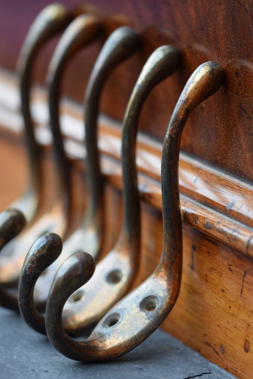 Five Coat Hooks Set Of Five 1920S Pegs Vintage Reclaimed Cast Iron Copper Detail