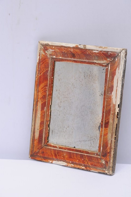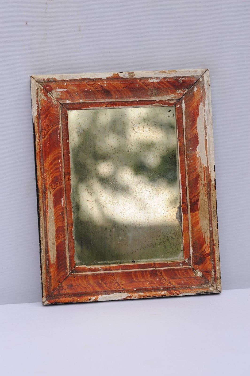 Small Distressed Mirror Old Worn Antique Plate Mirror Frame Glass Mercury Pine