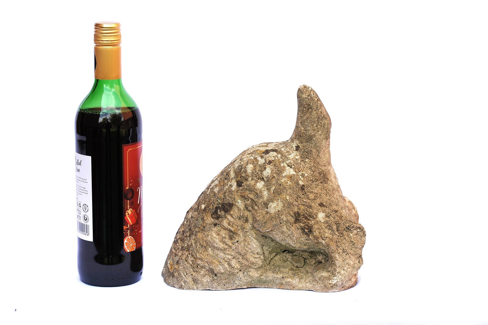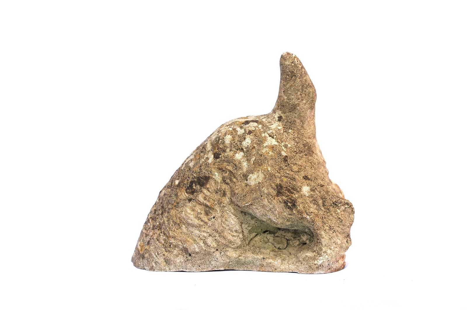 Garden weathered vintage cast stone study of a digging dog. Surface lichen. Great item for the garden. Includes UK delivery.