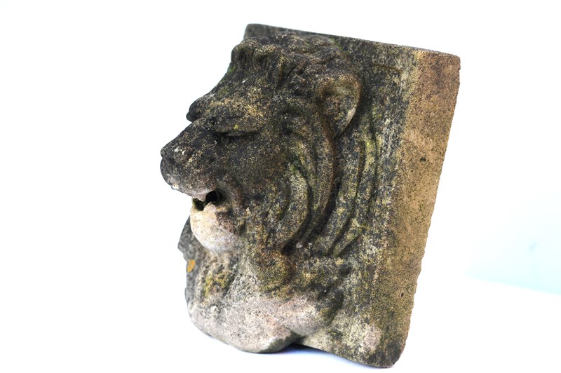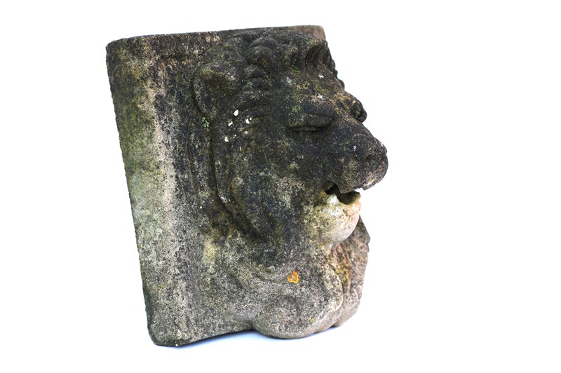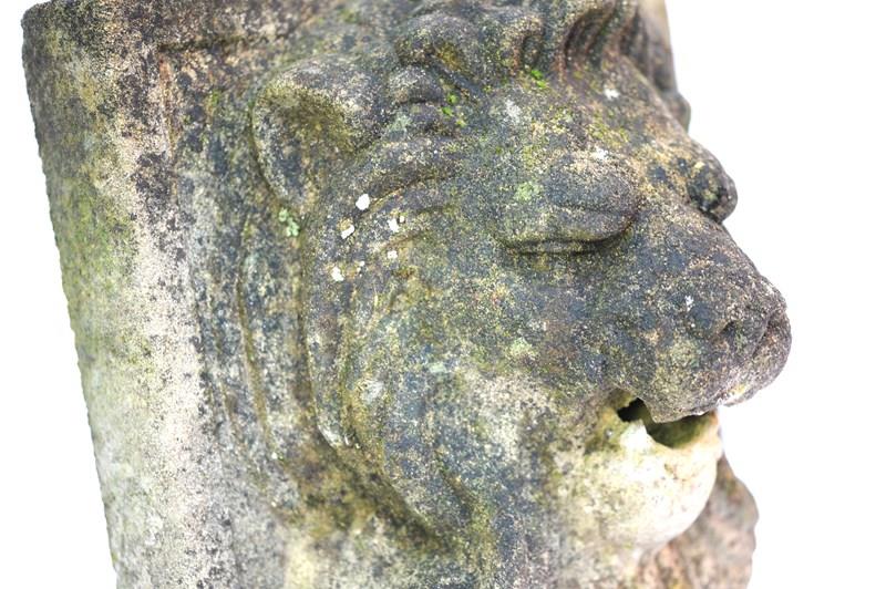 Stone Lion Fountain Head Vintage Garden Water Feature Wall Spout Trough Outlet