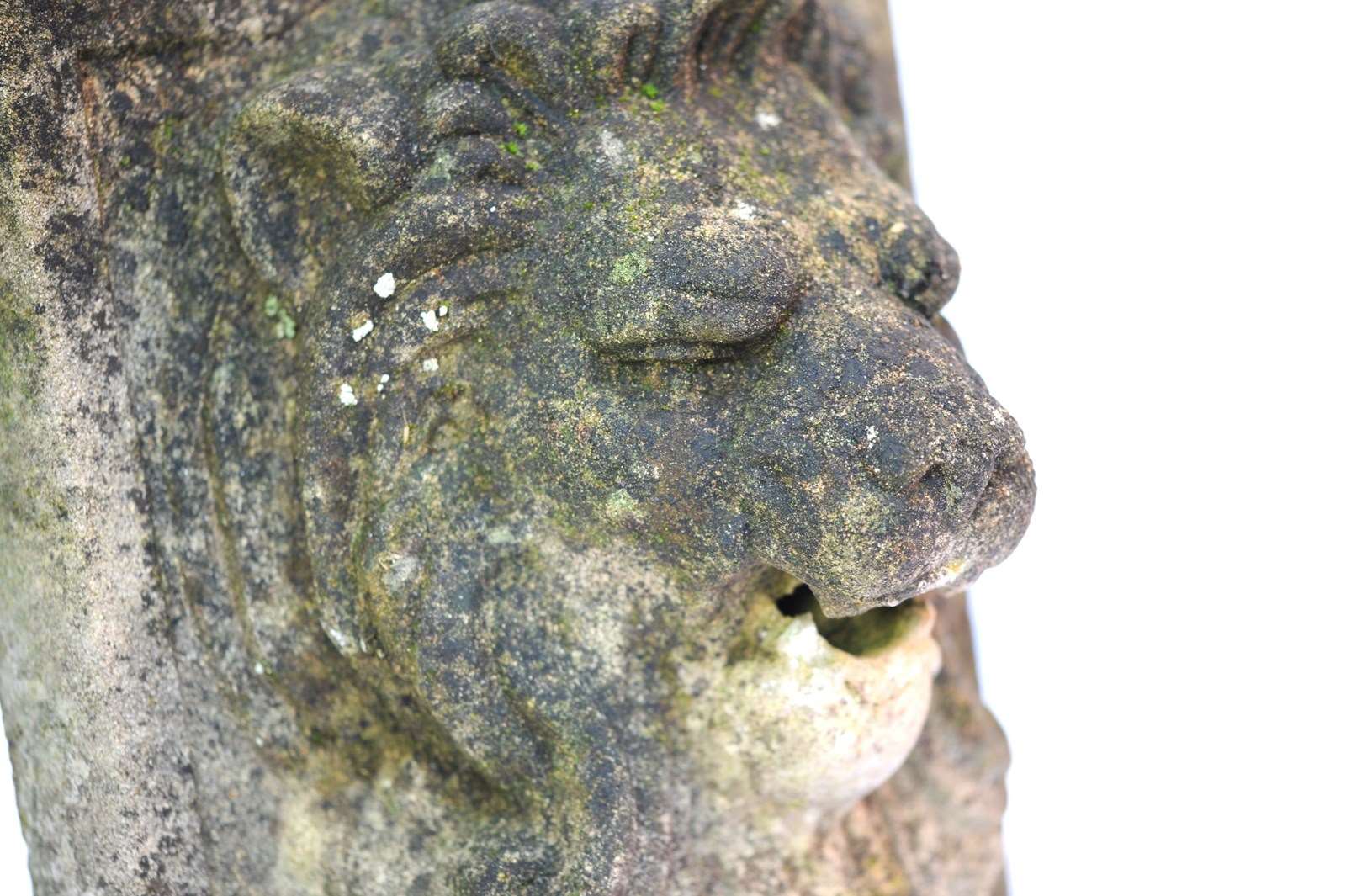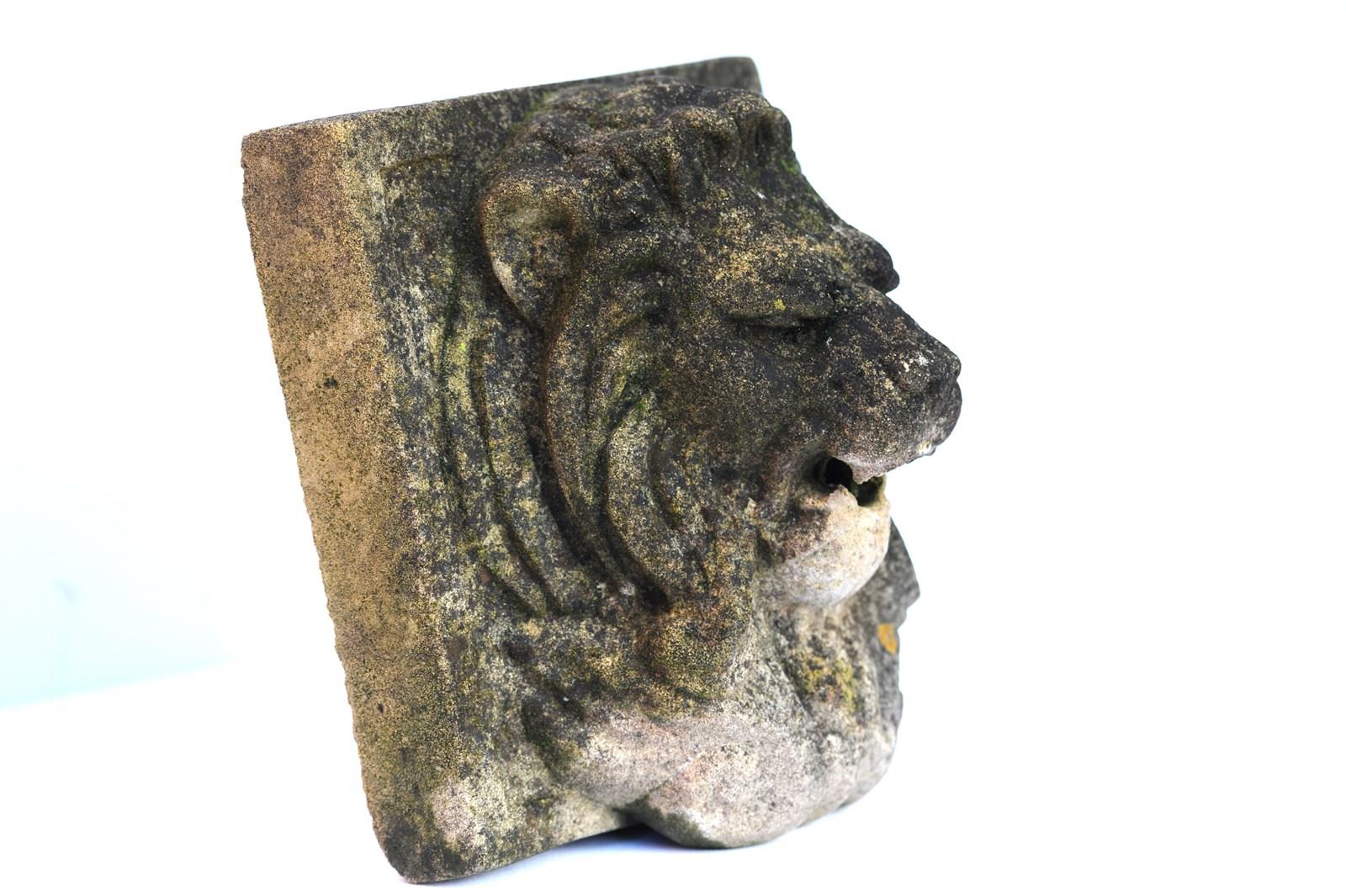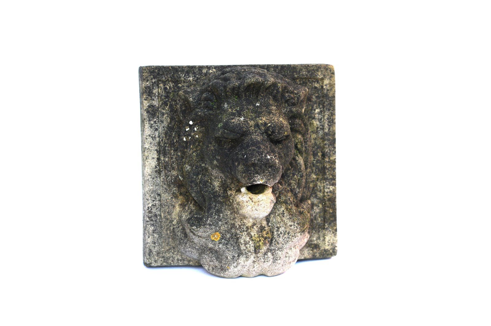 An imposing English garden weathered cast stone Lion head water feature. Approximately 12" x 12" with a depth of 8". Good overall condition, well garden weathered, clear access to the mouth outlet. Fine detailing & definition. This will now be kept under cover until sold & once sold will be securely packaged & dispatched. Sale price includes standard delivery within the United Kingdom & would normally be dispatched within a week. If you needed this item urgently we can send by courier at an additional cost, please enquire. Returns are happily accepted less all delivery expenses.