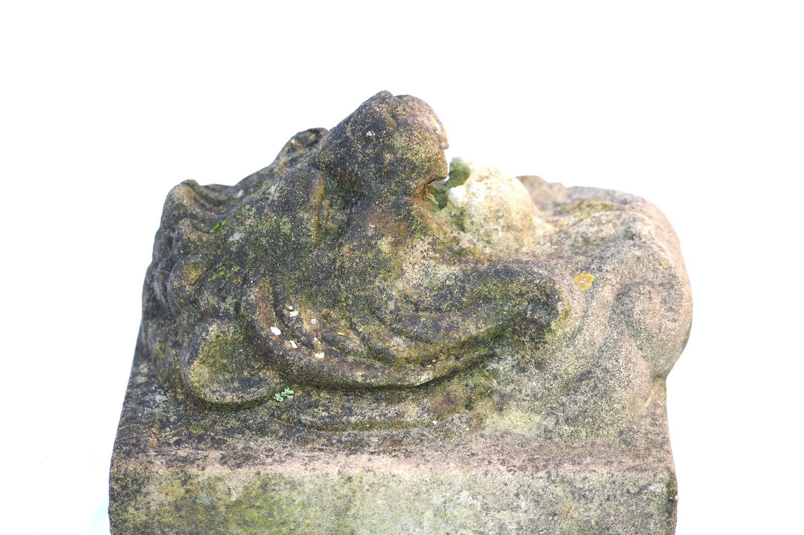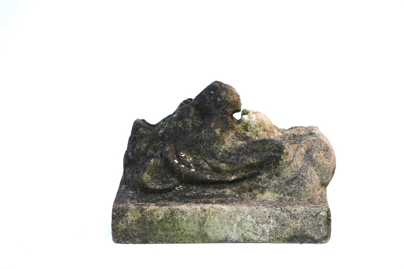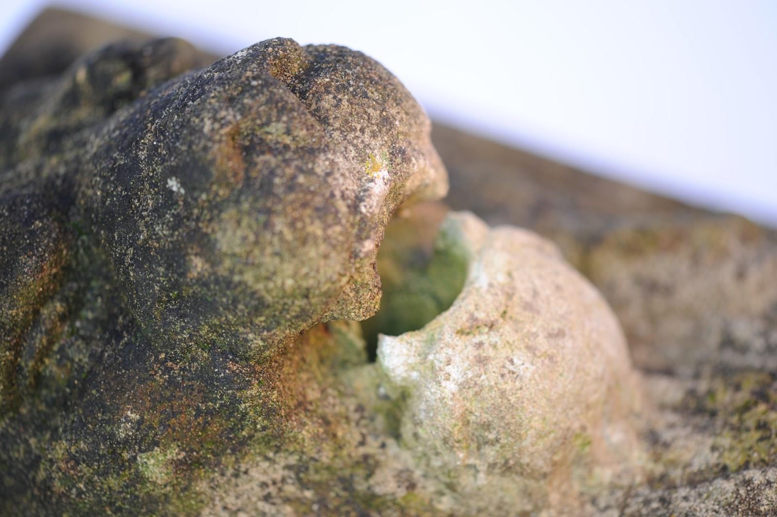 An imposing English garden weathered cast stone Lion head water feature. Approximately 12" x 12" with a depth of 8". Good overall condition, well garden weathered, clear access to the mouth outlet. Fine detailing & definition. This will now be kept under cover until sold & once sold will be securely packaged & dispatched. Sale price includes standard delivery within the United Kingdom & would normally be dispatched within a week. If you needed this item urgently we can send by courier at an additional cost, please enquire. Returns are happily accepted less all delivery expenses.