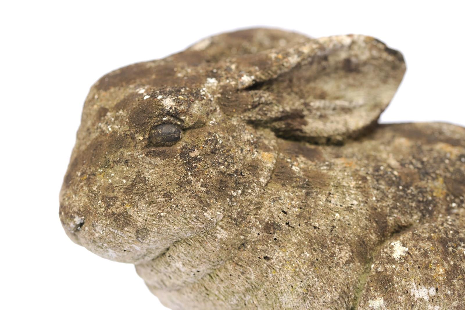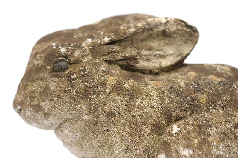 A weathered cast stone figure of a resting rabbit. Great detailing & good overall condition. Height 7" , width 9", depth 6.5". Weight 7.5 kg. Free UK inland tracked delivery. Normally dispatched within a day.
