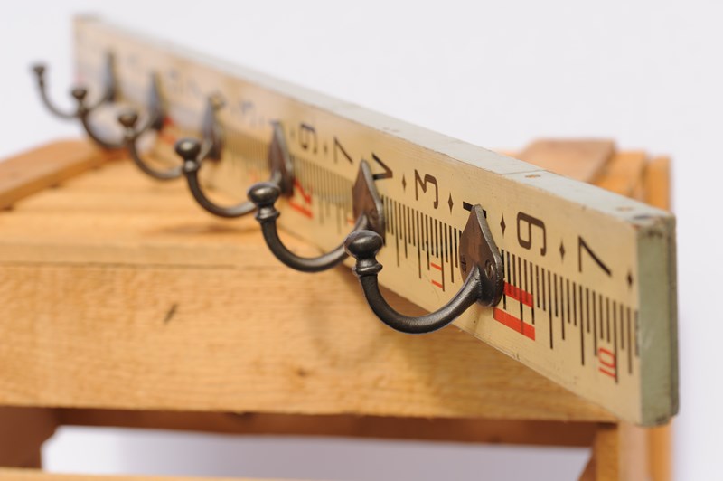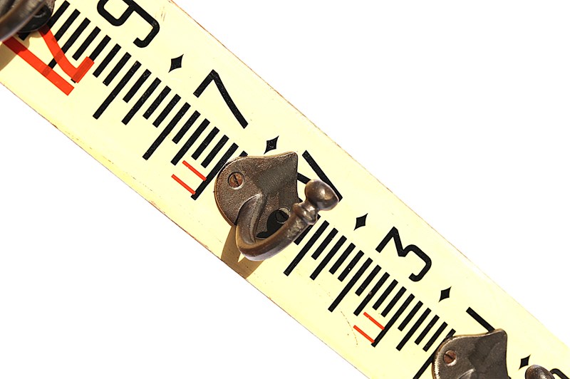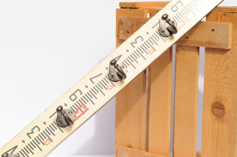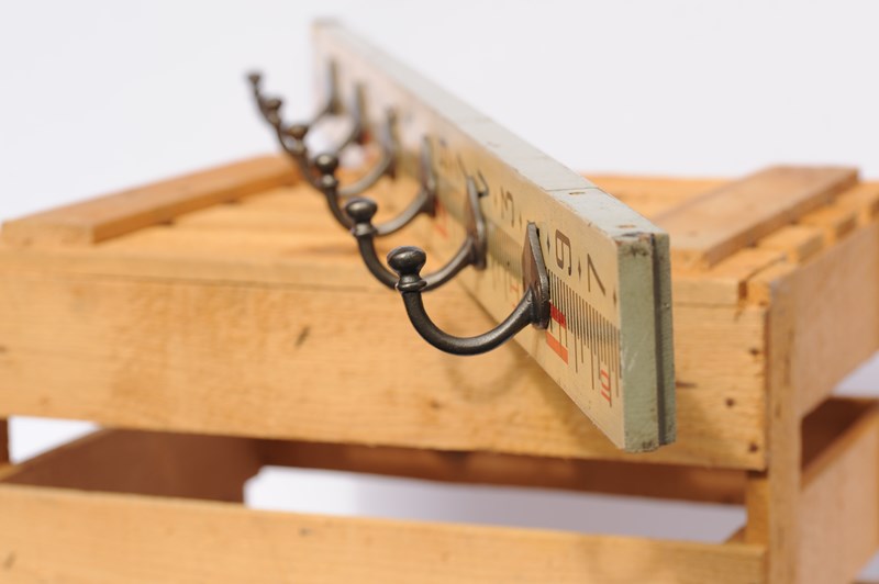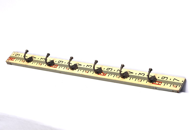 A surveyors coat rack. Six new cast iron hooks mounted onto an old wooden surveyors staff. Overall length 1 mt 6 cm or 41.75 inches. Good overall clean ready to use condition. Sale includes UK inland tracked delivery. Returns are happily accepted.