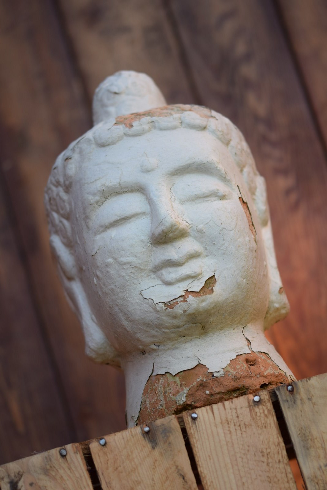 Terracotta Buddha Head Worn Old Painted & Weathered Vintage Meditation Garden
