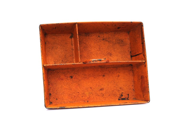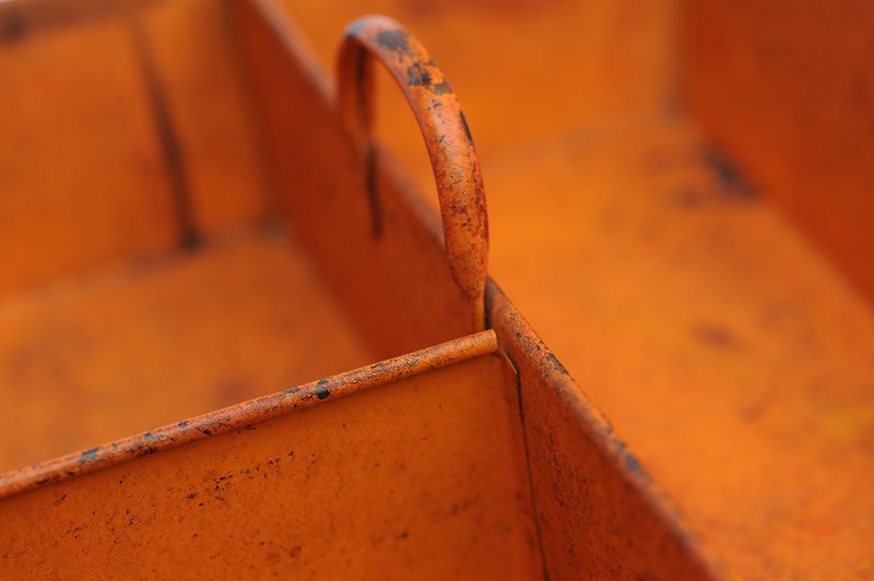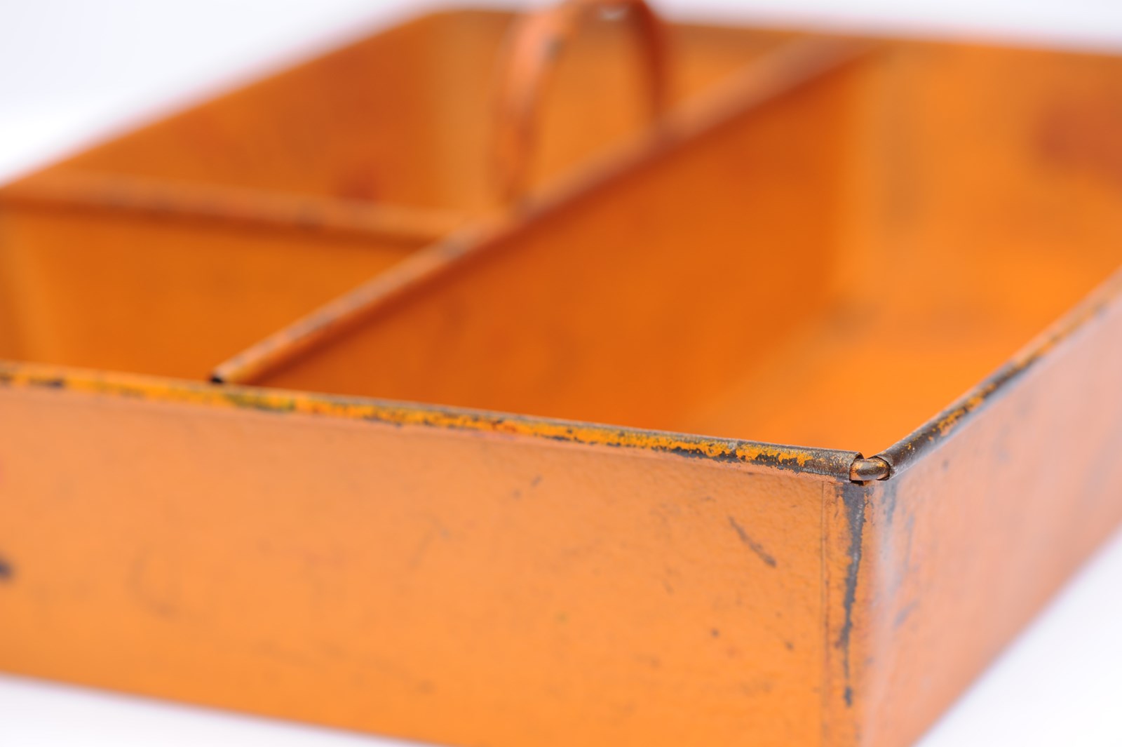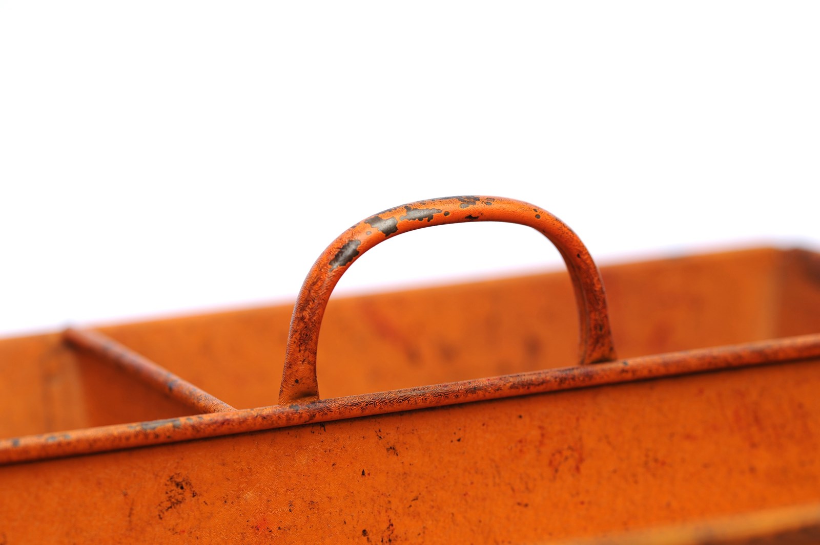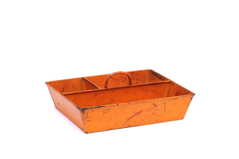Toleware Housekeepers Tray With Handle Cleaning Box Metal Orange Antique Painted