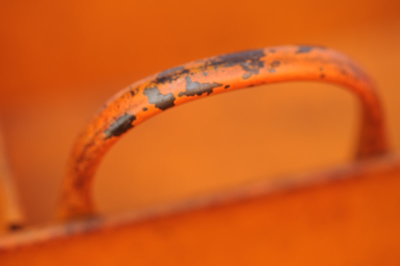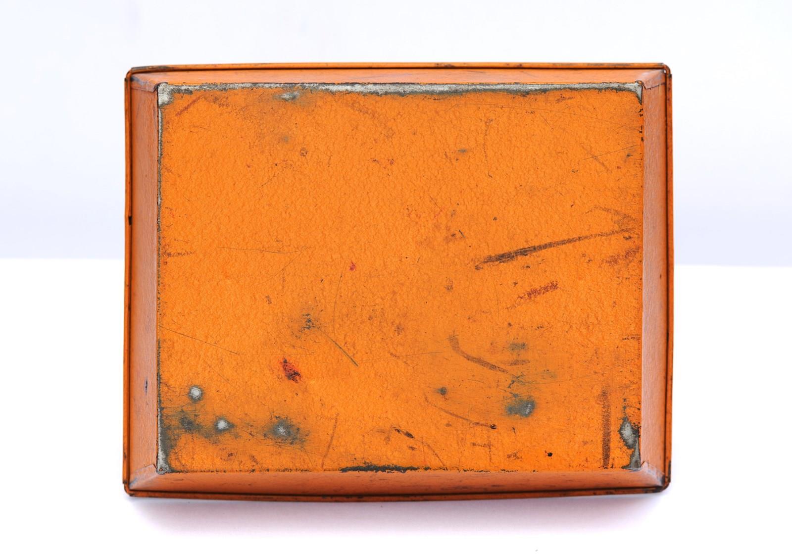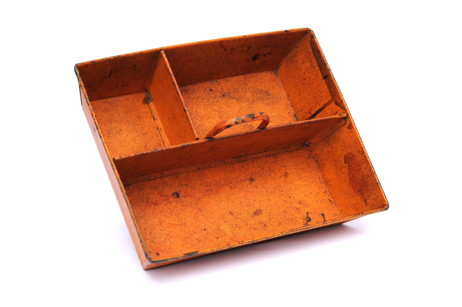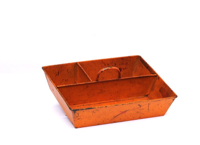 Toleware Housekeepers Tray With Handle Cleaning Box Metal Orange Antique Painted