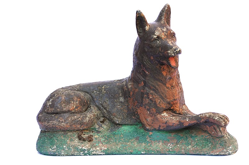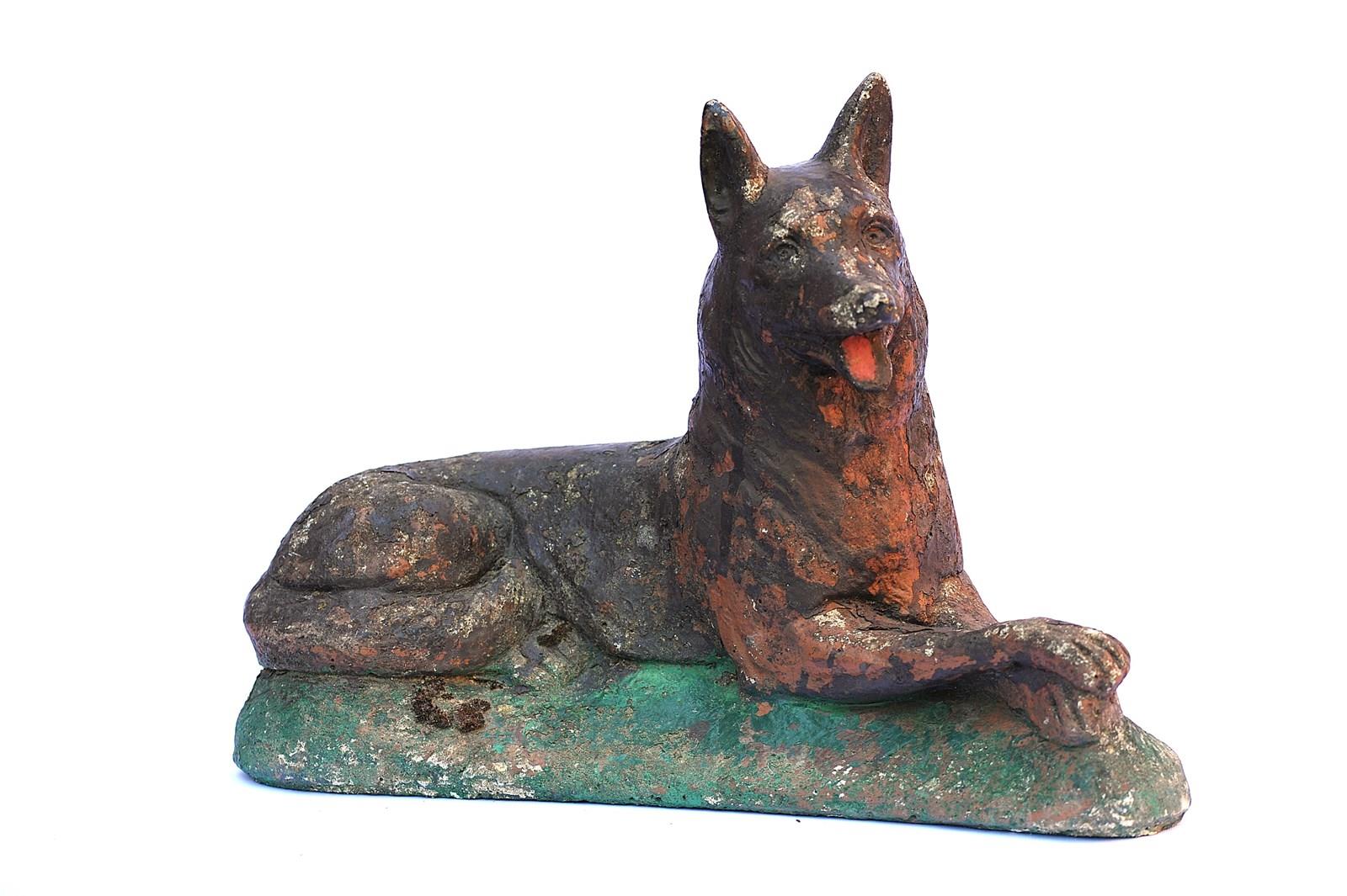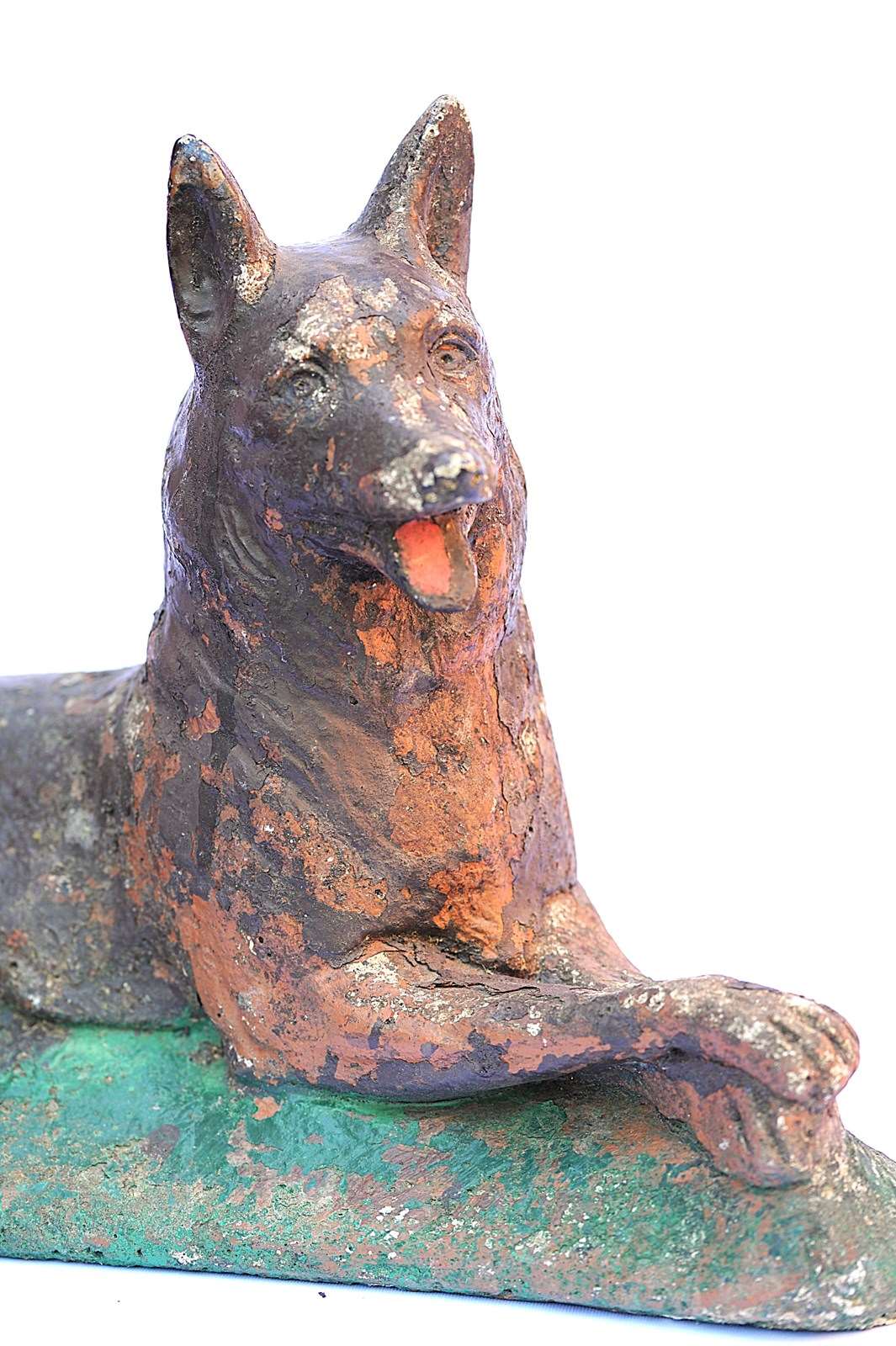 Alsatian German Shepherd Old Vintage Cast Stone Garden Figure Stone Dog