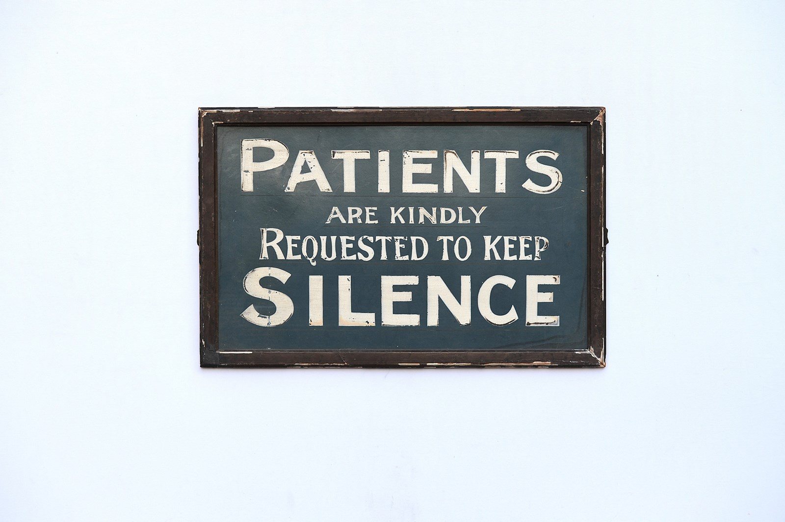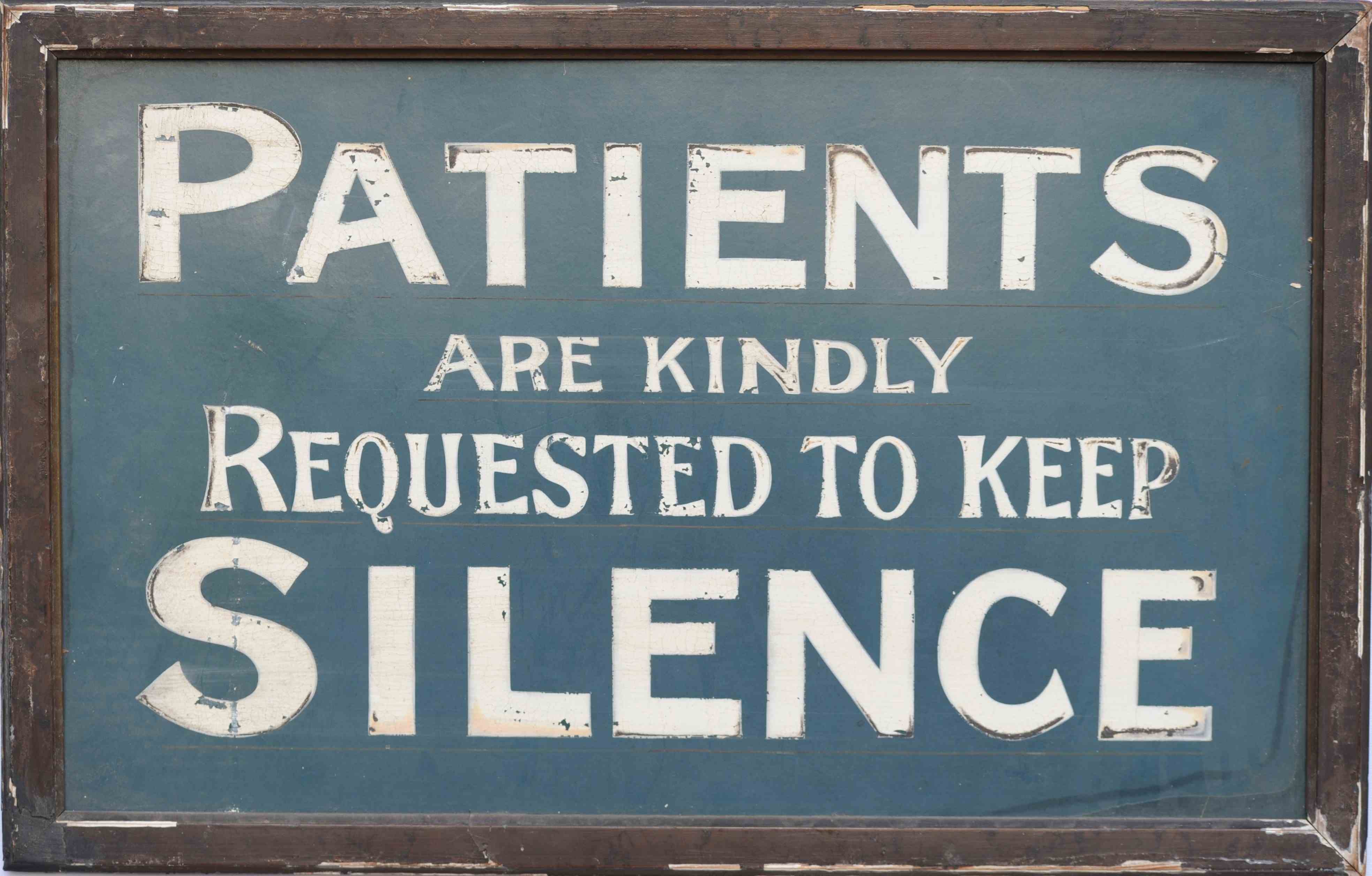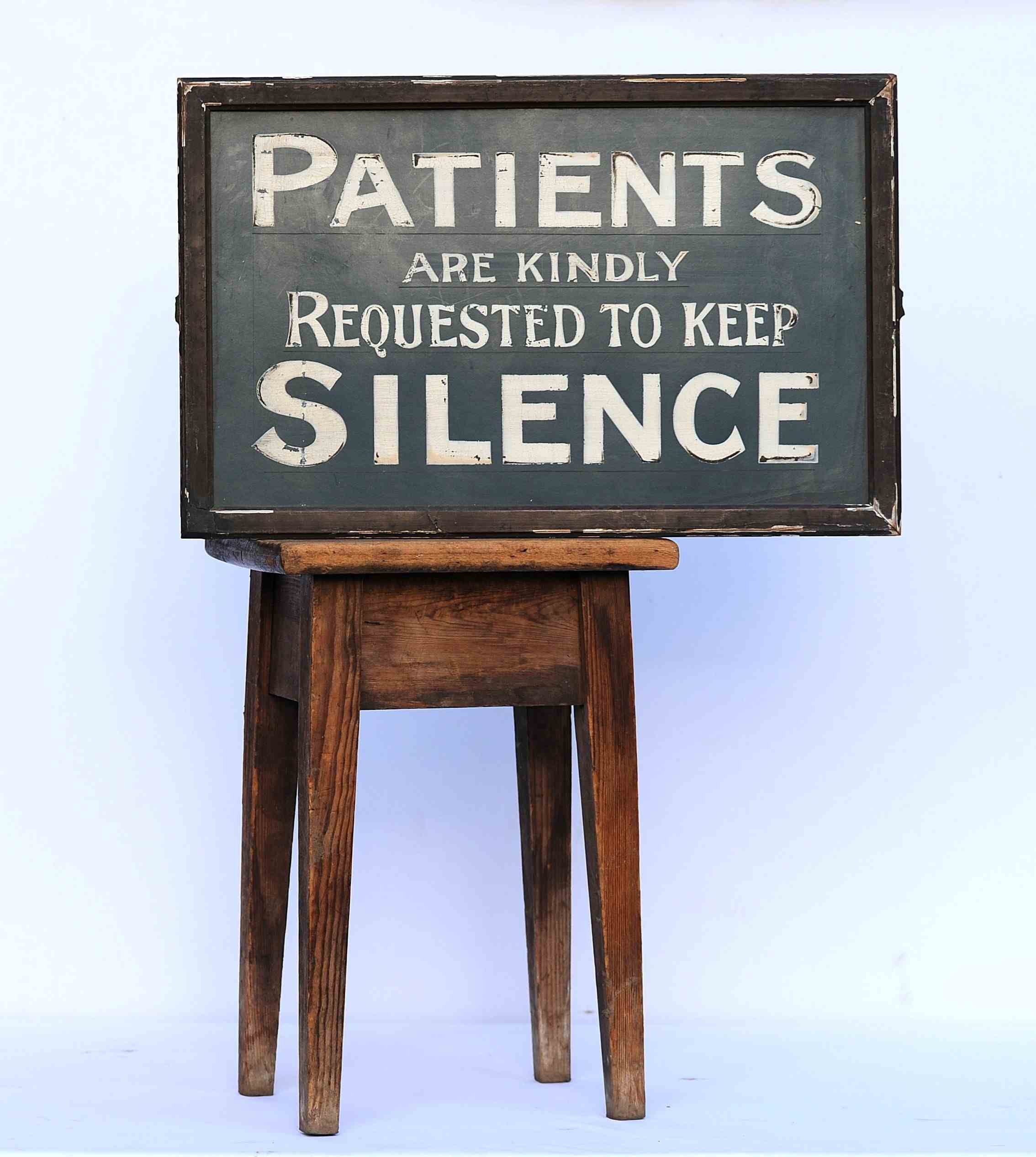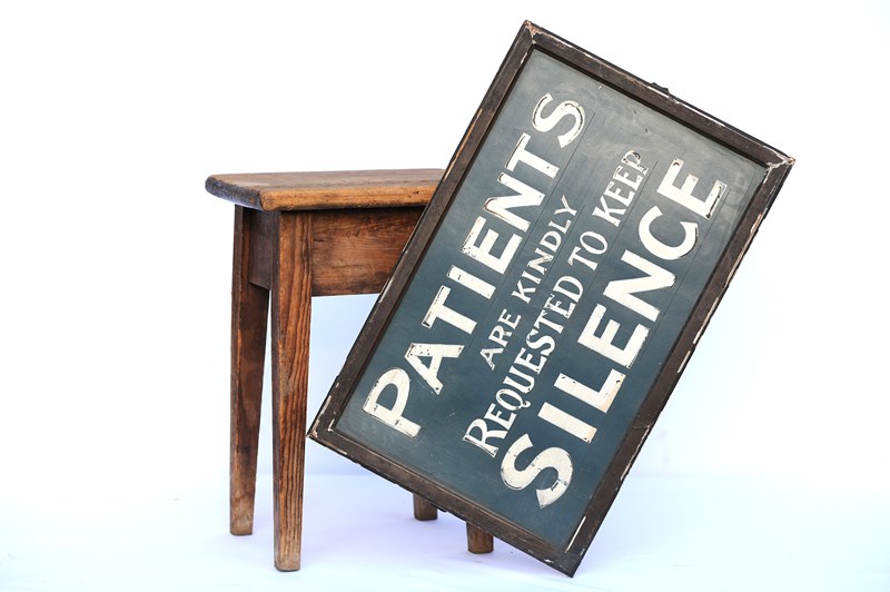 A unique 1920s original untouched rare surviving Doctors Waiting Room Sign. Hand painted on thin board with a wooden backing, original frame, side mounting brackets broken off, lightweight construction, weighs around 0.7kg, approximately 21 inches x 14 inches, frame finish flaking in places. A small miracle its survived. Great original piece & highly decorative, it would make a perfect gift to someone. Sale includes delivery within the United Kingdom. Returns are happily accepted within 5 days of receipt.