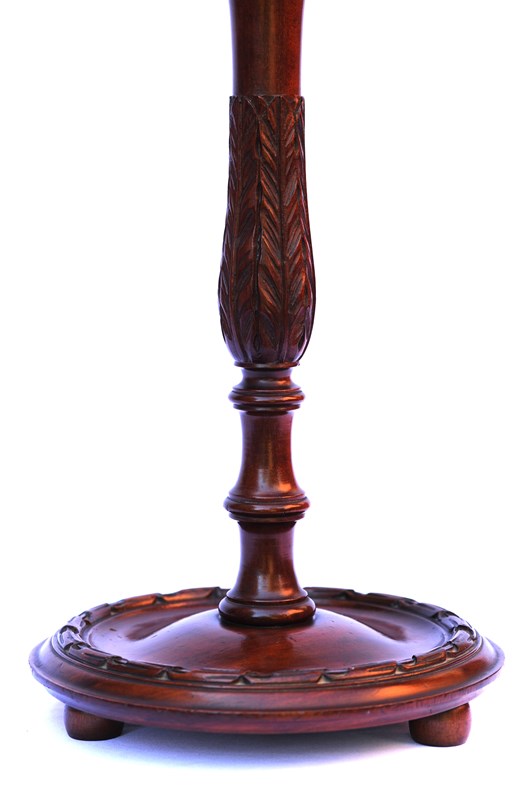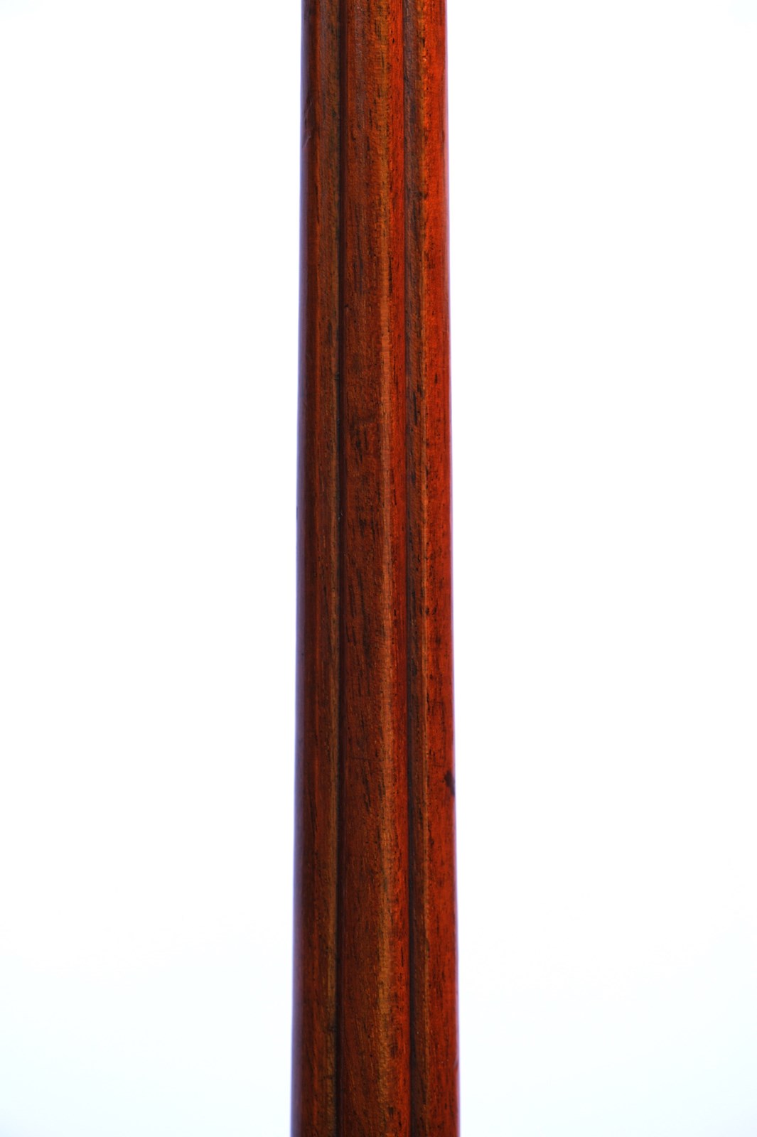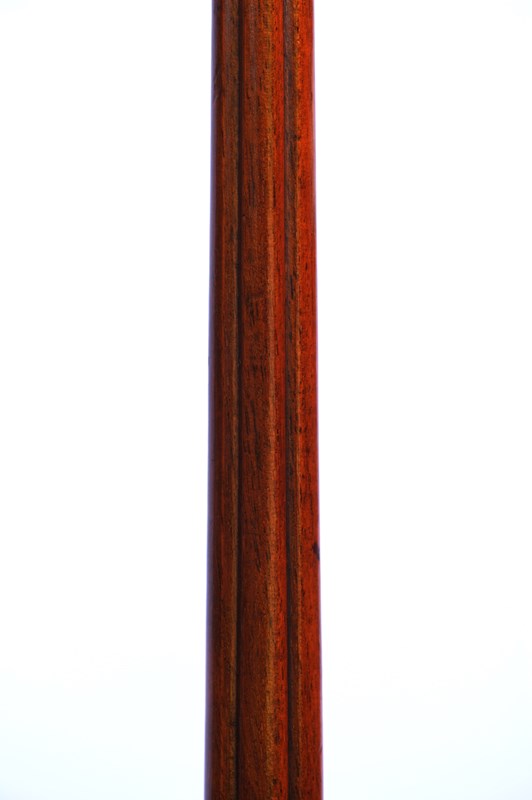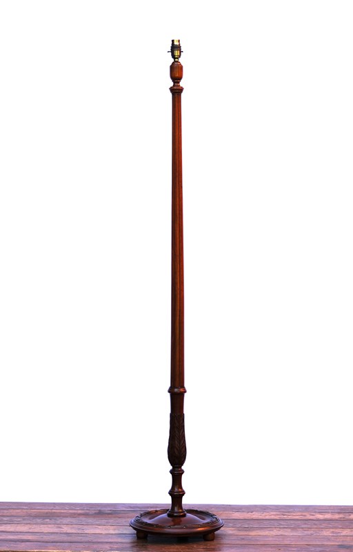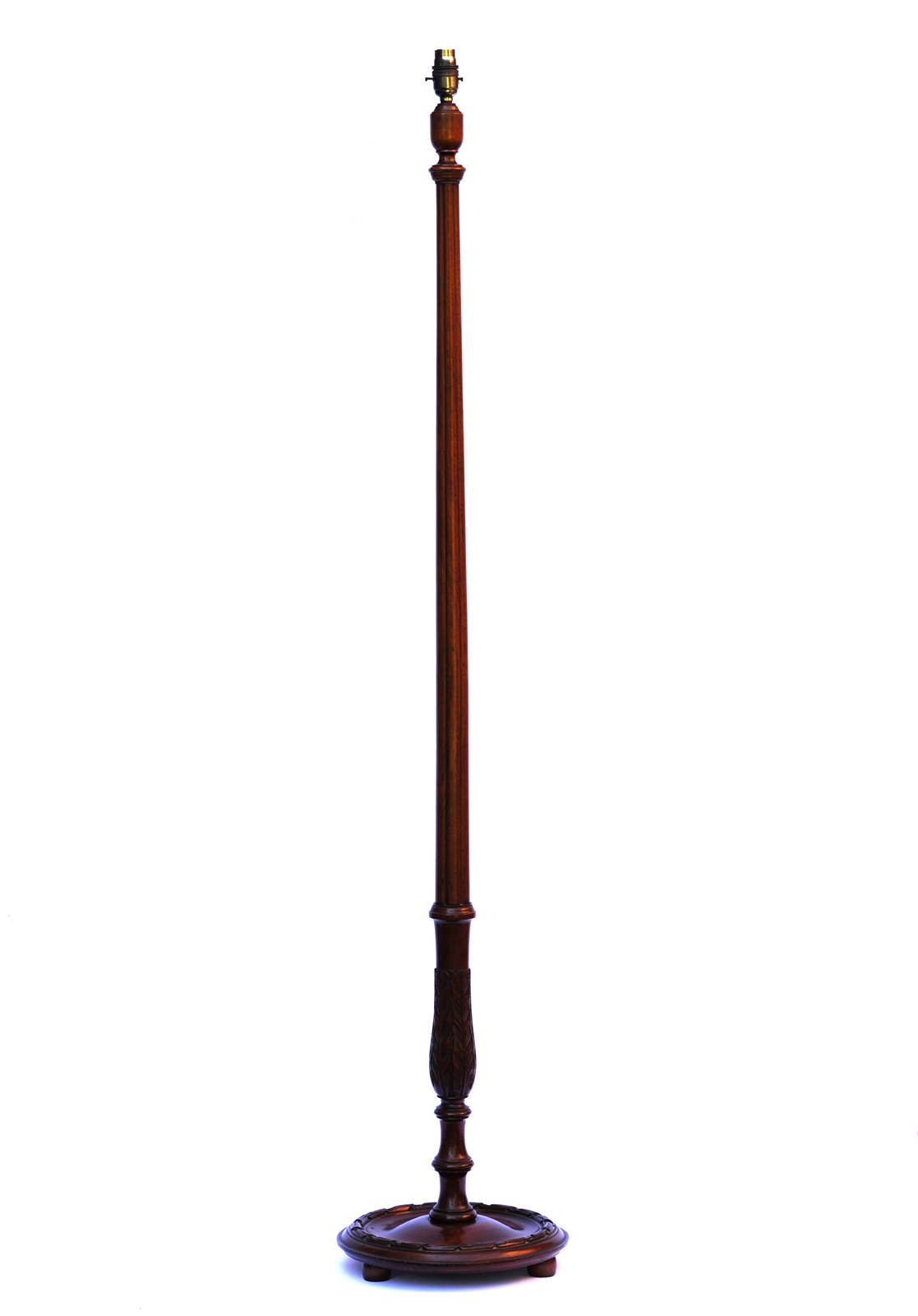 An outstanding Walnut Standard Lamp. Height 56.5 inches or 1 mt 44 cm. Fitted with a new "aged" brass bayonet bulb holder, toggle on-off switch & shade ring. On purchase the lamp will be rewired with fabric covered flex, you may choose the colour & length of flex needed, a new plug will be fitted & then the lamp will be PAT tested before dispatch. This lamp is extremely elegant with its fluted & hand carved stem. The base is weighted & it sits firmly on three bun feet. The lamp has been cleaned & polished & is now in superb condition with such a lovely warm rich colour. The sale price includes delivery within the United Kingdom. Dispatched within two weeks of purchase.