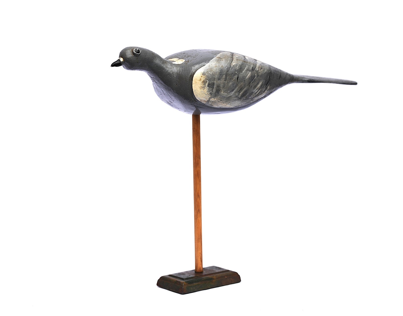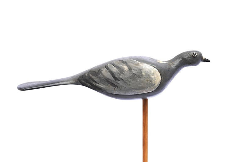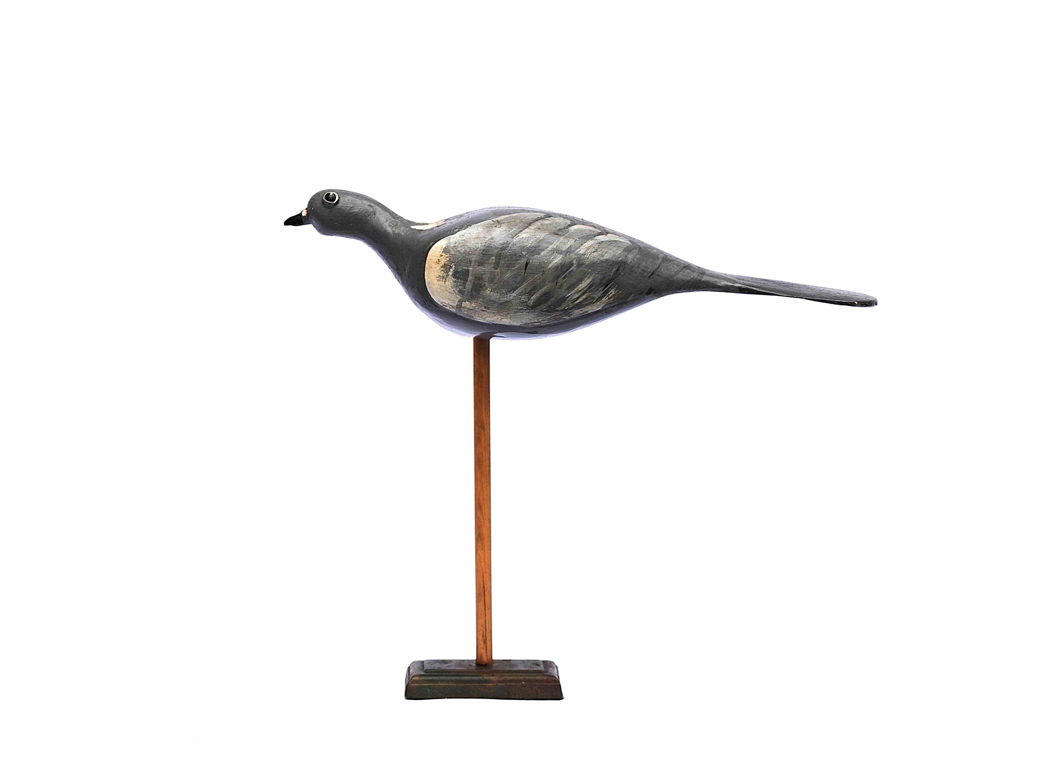 A good wooden hand carved English Wood Pigeon Decoy. We have fashioned the stand it currently sits on & it simply rests on top of that, the stand is included in the price. It displays well. Pigeon size 34 cm in length, 10 cm in height to the top of the head, body depth 10 cm. When on the stand it is 30 cm in height. Good overall condition. Sale includes delivery within the United Kingdom, returns are happily accepted within 5 days of receipt. We are more than happy to post further afield, please enquire for a quotation.