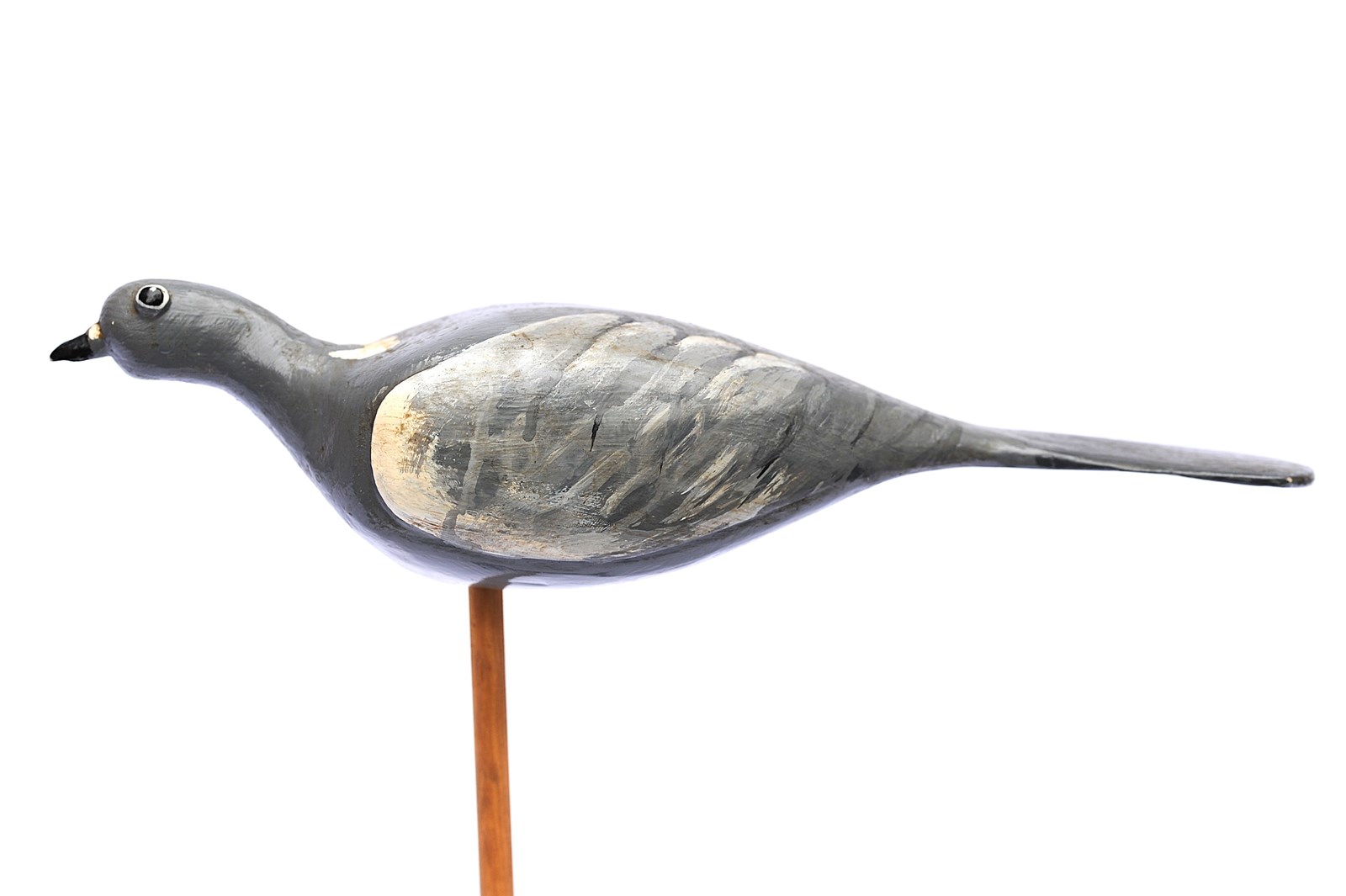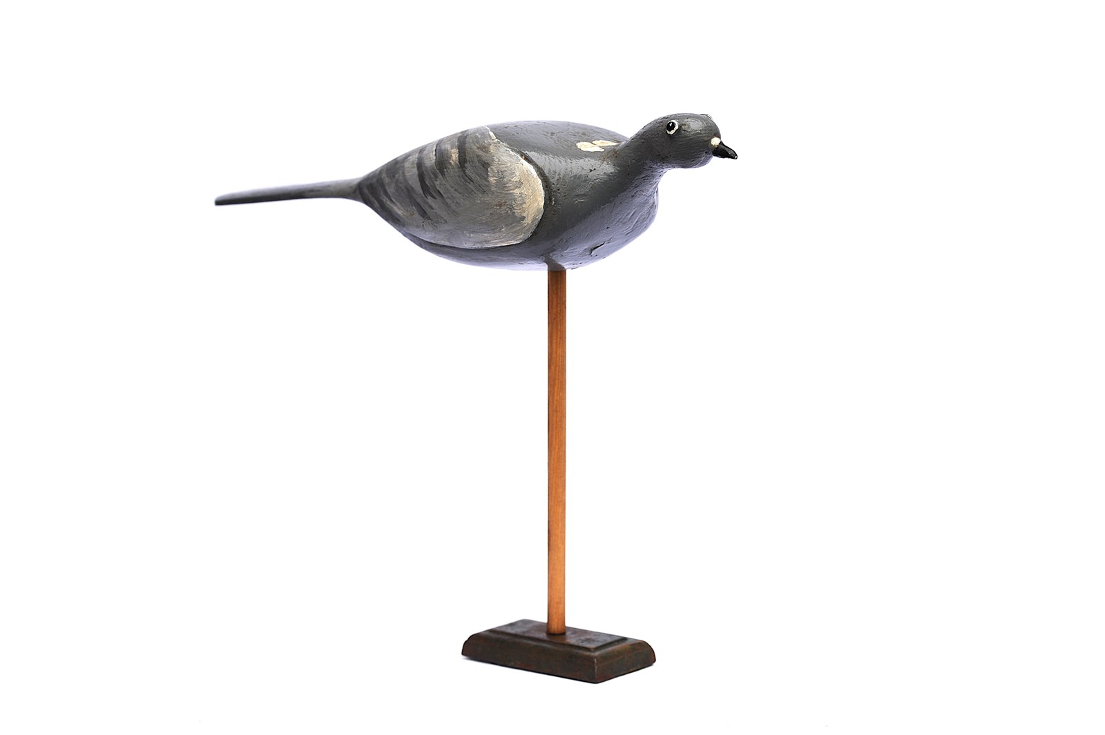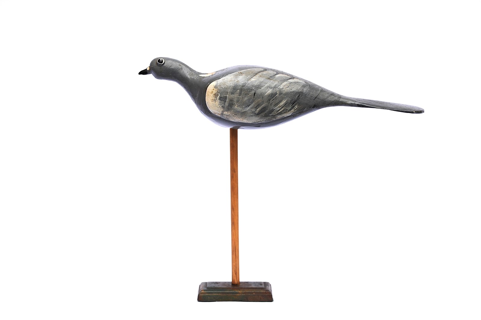 A good wooden hand carved English Wood Pigeon Decoy. We have fashioned the stand it currently sits on & it simply rests on top of that, the stand is included in the price. It displays well. Pigeon size 34 cm in length, 10 cm in height to the top of the head, body depth 10 cm. When on the stand it is 30 cm in height. Good overall condition. Sale includes delivery within the United Kingdom, returns are happily accepted within 5 days of receipt. We are more than happy to post further afield, please enquire for a quotation.