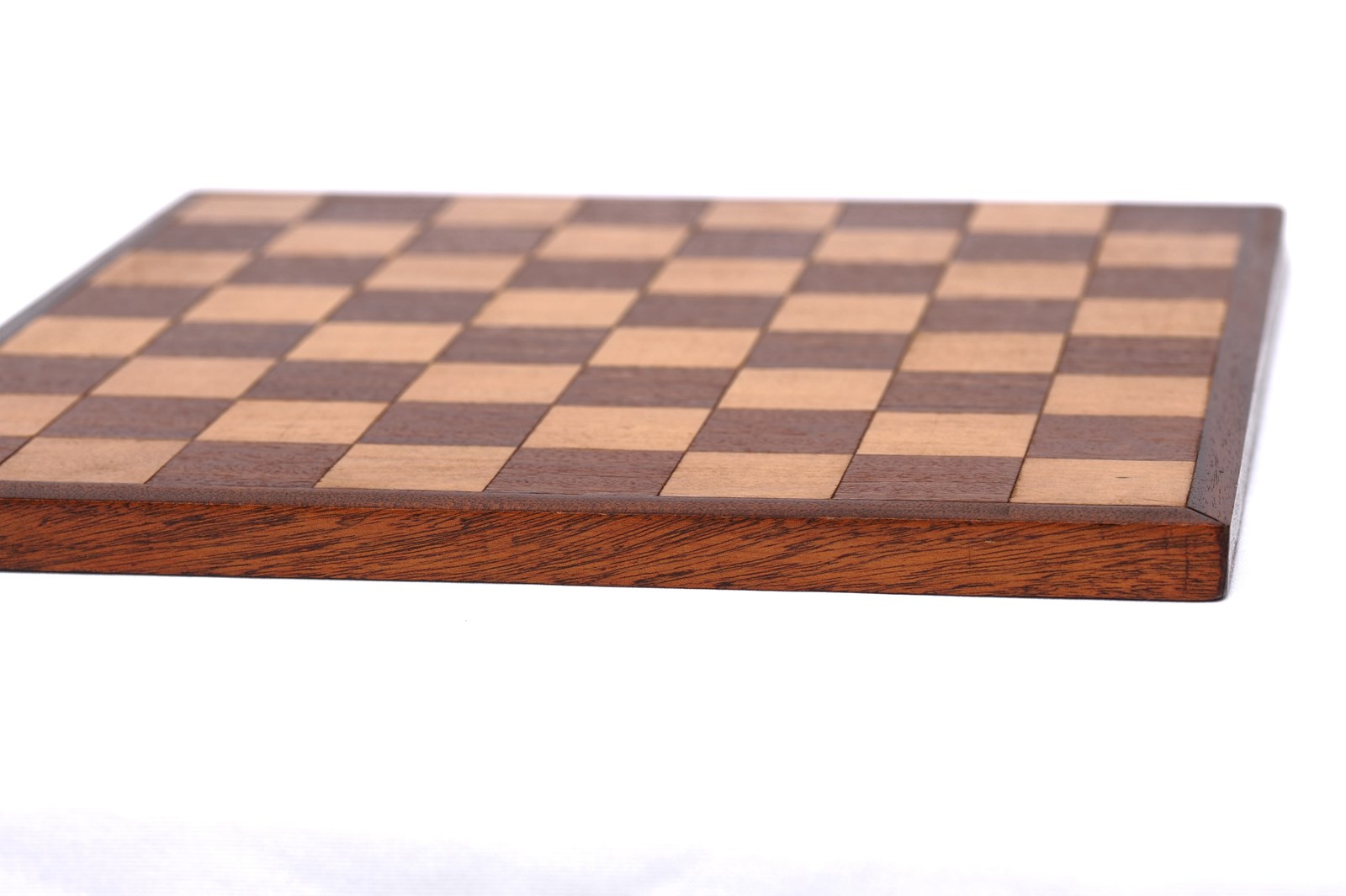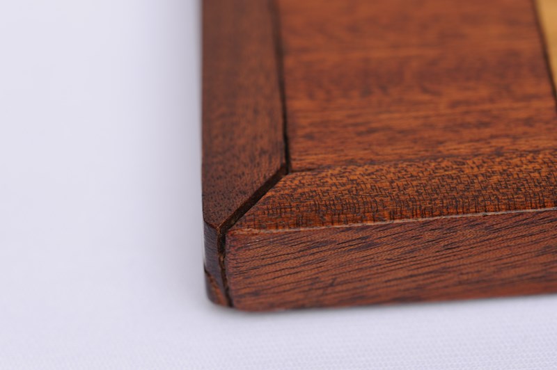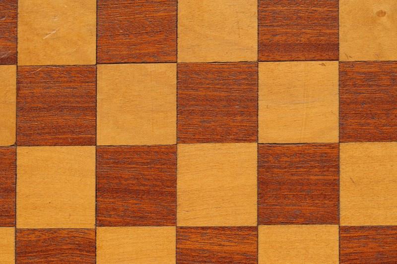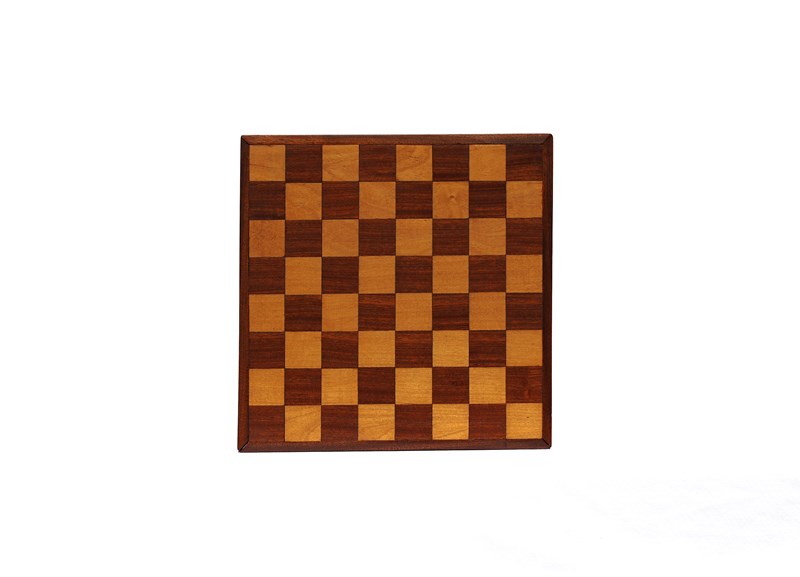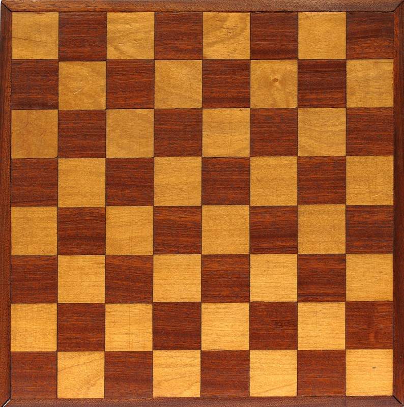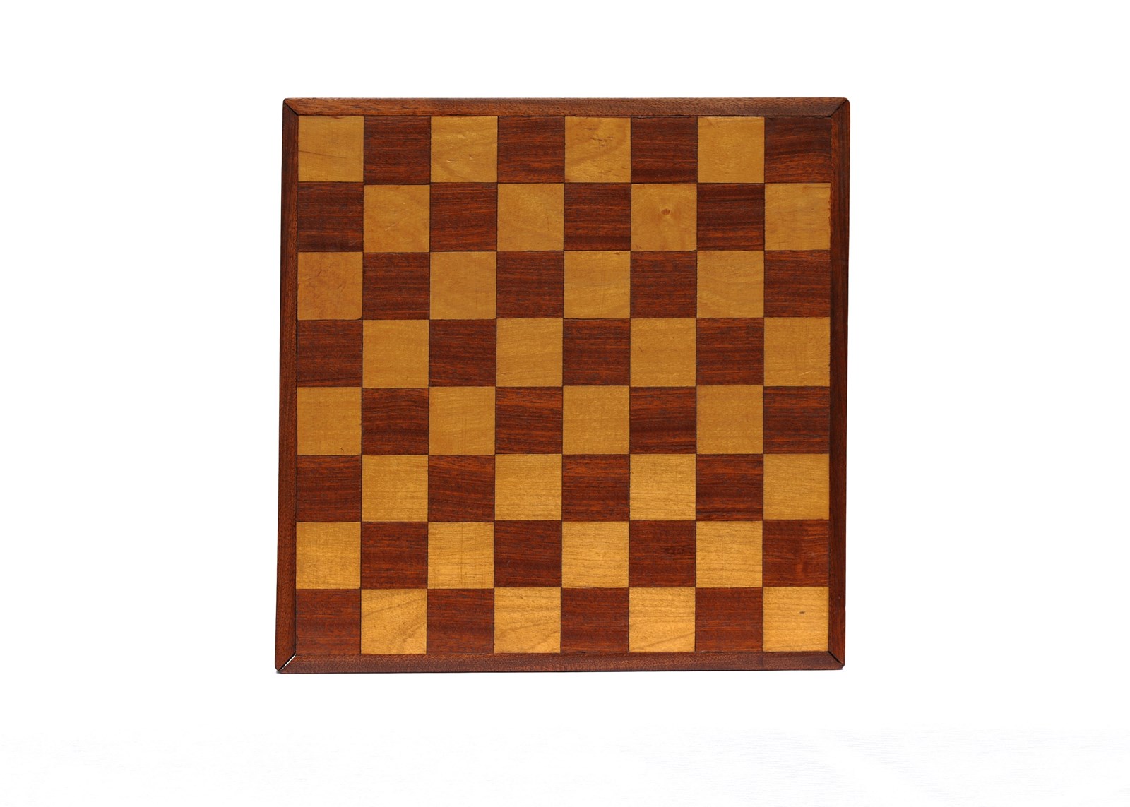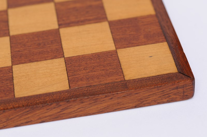 A vintage home made wooden chess board. Mid 20th century in date. Mahogany & Beech fronted on a board backing. 34 cm x 34 cm overall, each square 4 cm x 4 cm. Good overall clean ready to use condition, gap to one corner, just due to age. Free UK inland tracked delivery.