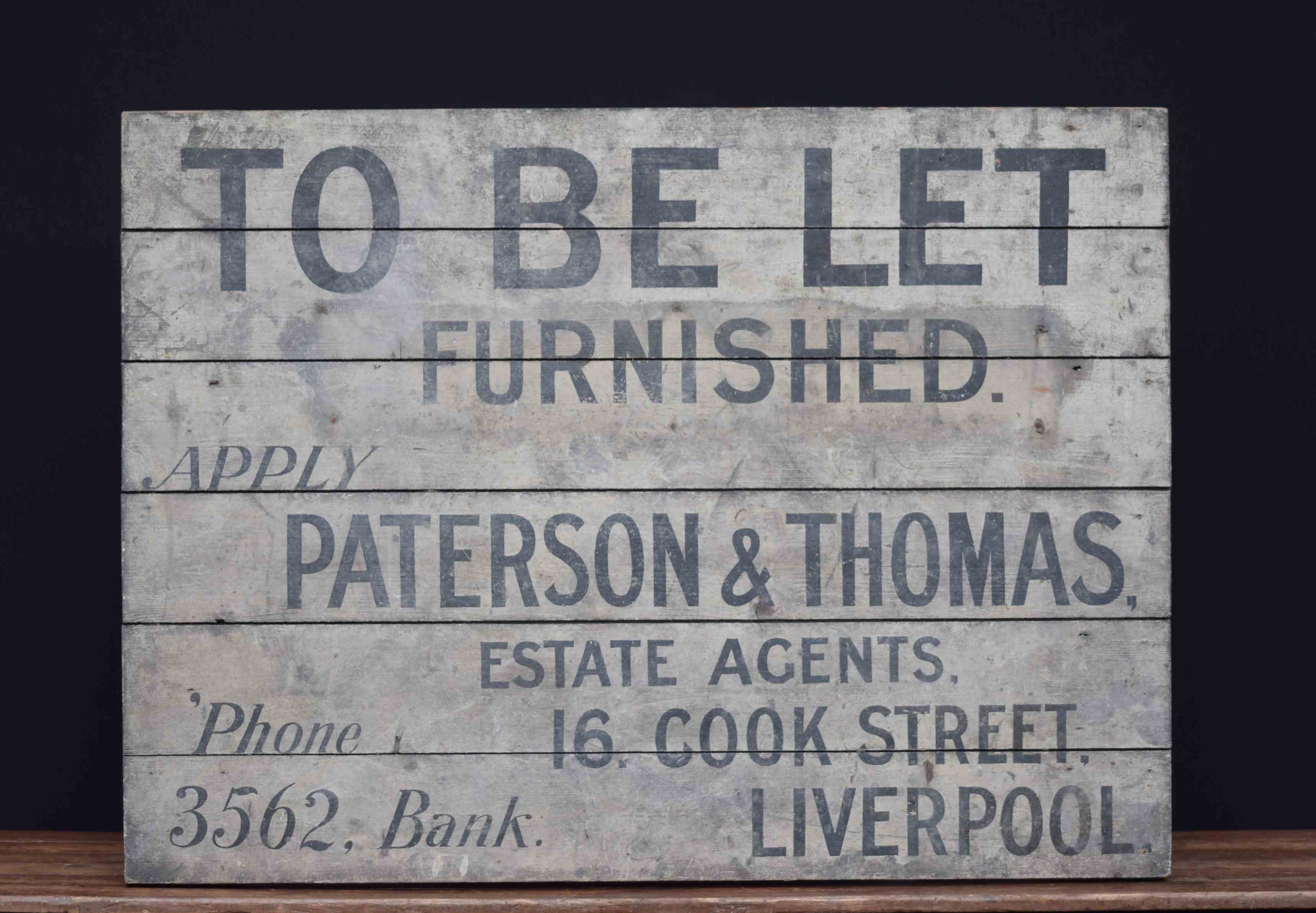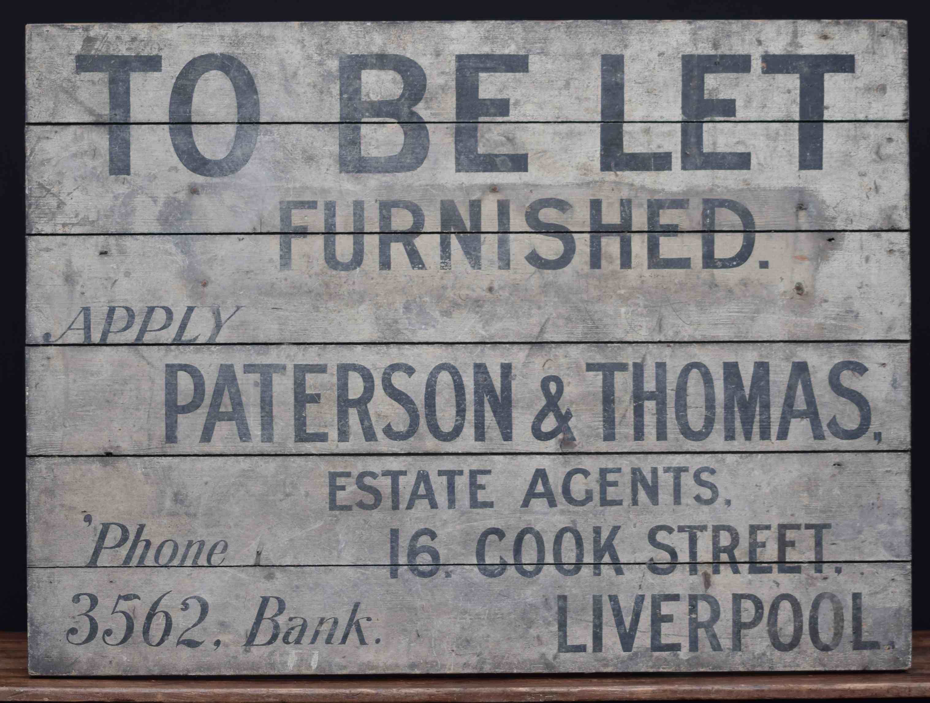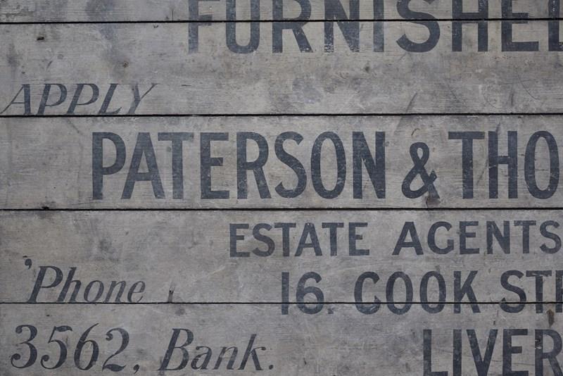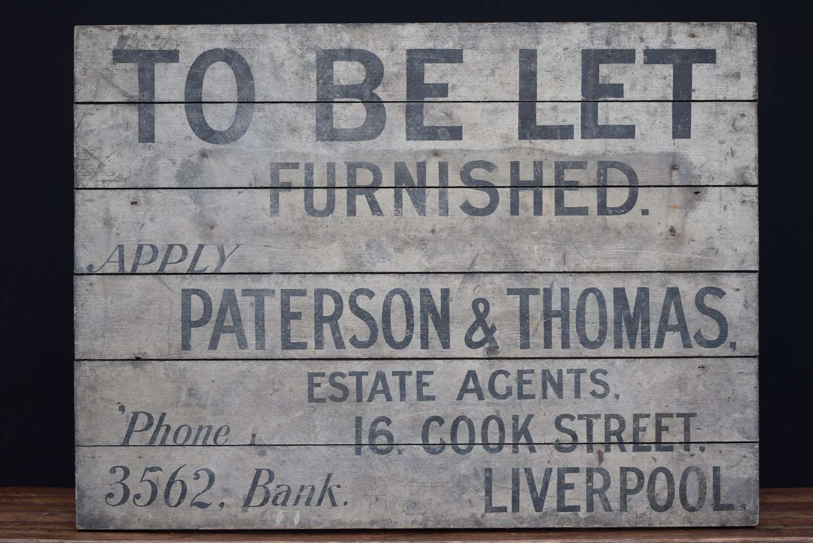 A rare surviving mid 20th century original hand painted Liverpool Estate Agent advertising sign on pine panels. Approximately 45 inches x 33 inches. Old completely untouched original condition. Displaying well with a time worn look. Good solid condition. UK inland tracked delivery by Parcelforce is included in the price.