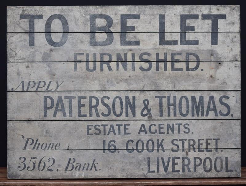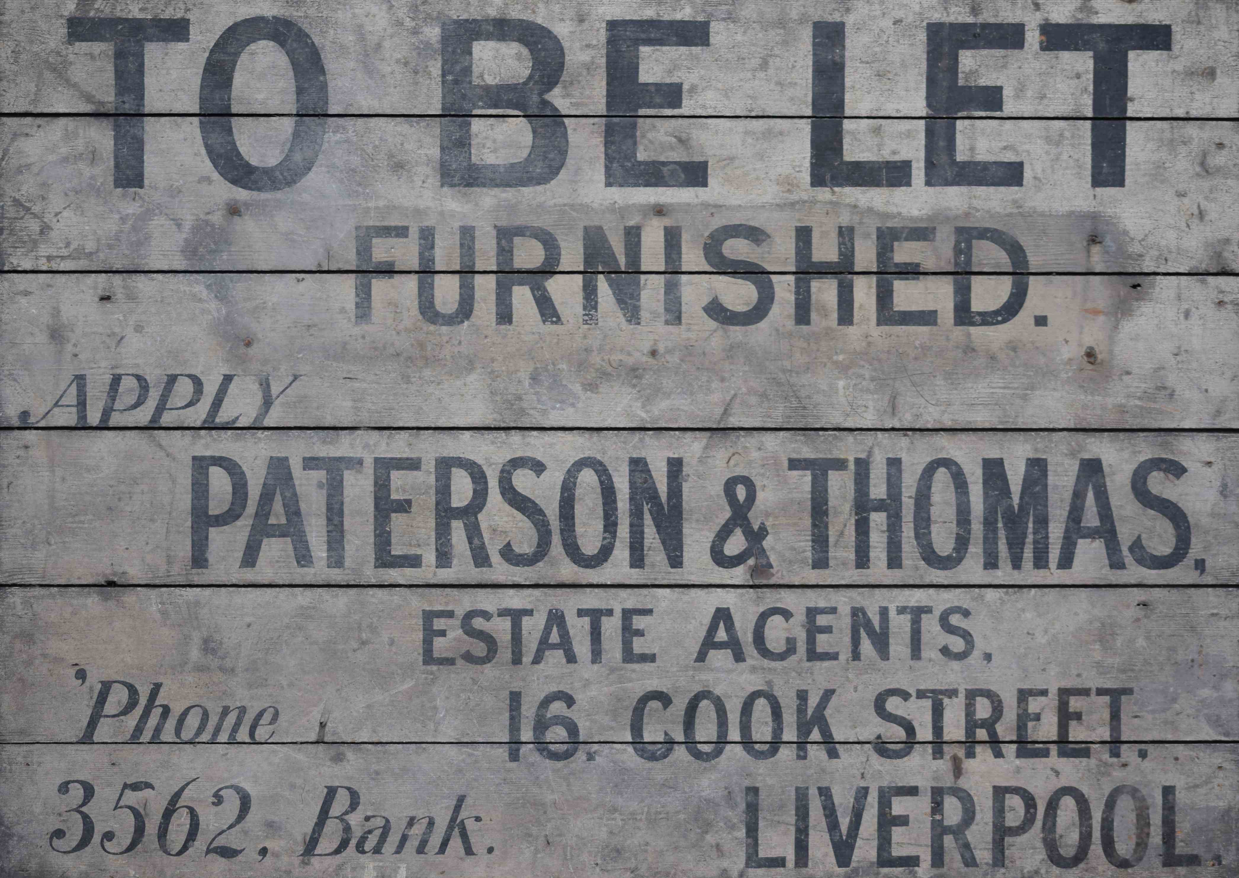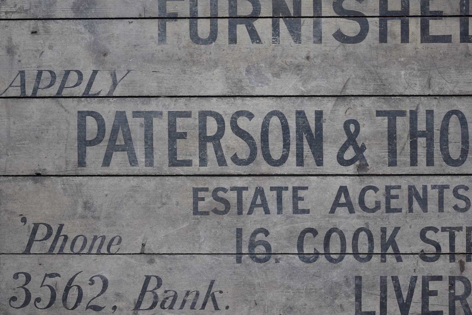 A rare surviving mid 20th century original hand painted Liverpool Estate Agent advertising sign on pine panels. Approximately 45 inches x 33 inches. Old completely untouched original condition. Displaying well with a time worn look. Good solid condition. UK inland tracked delivery by Parcelforce is included in the price.