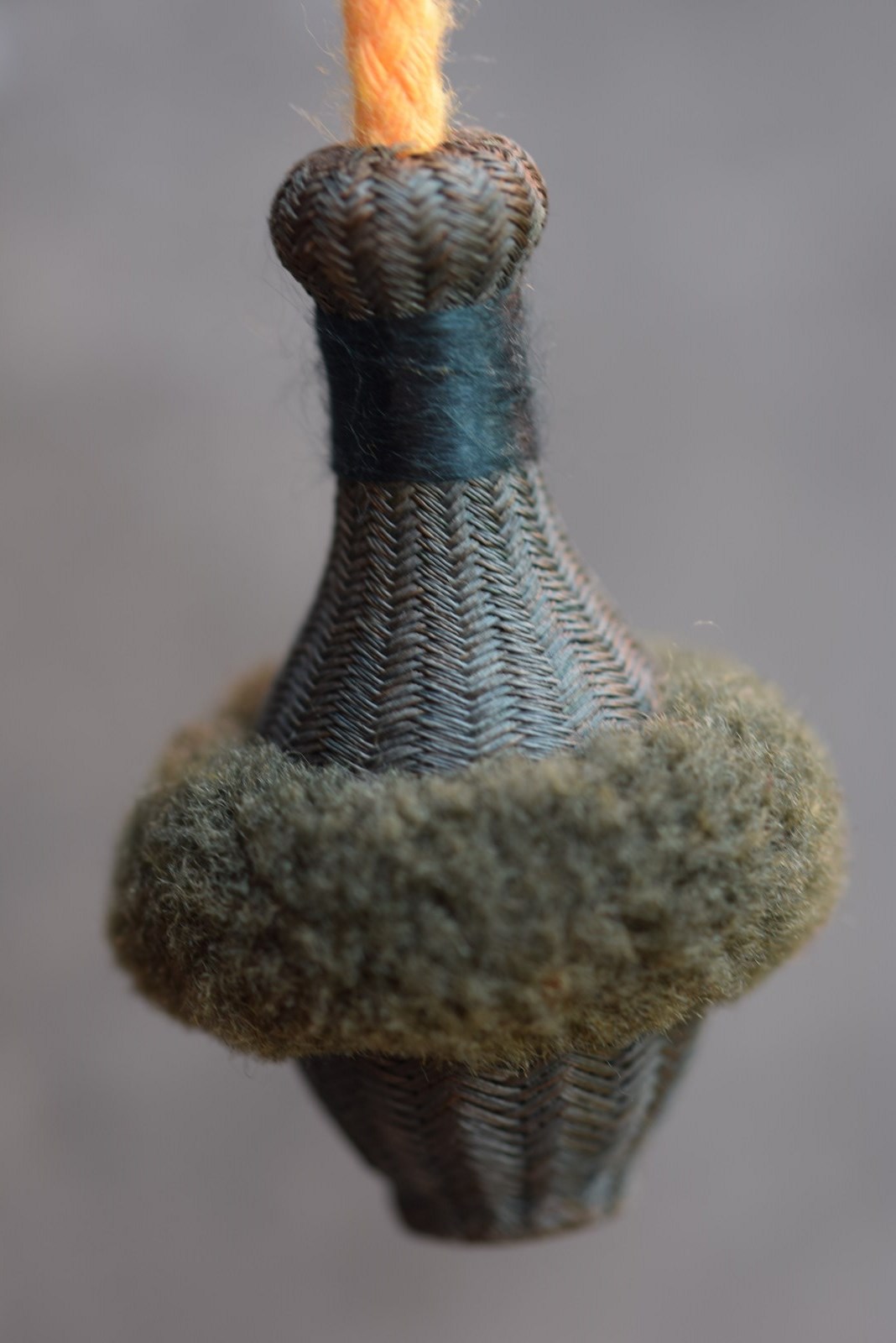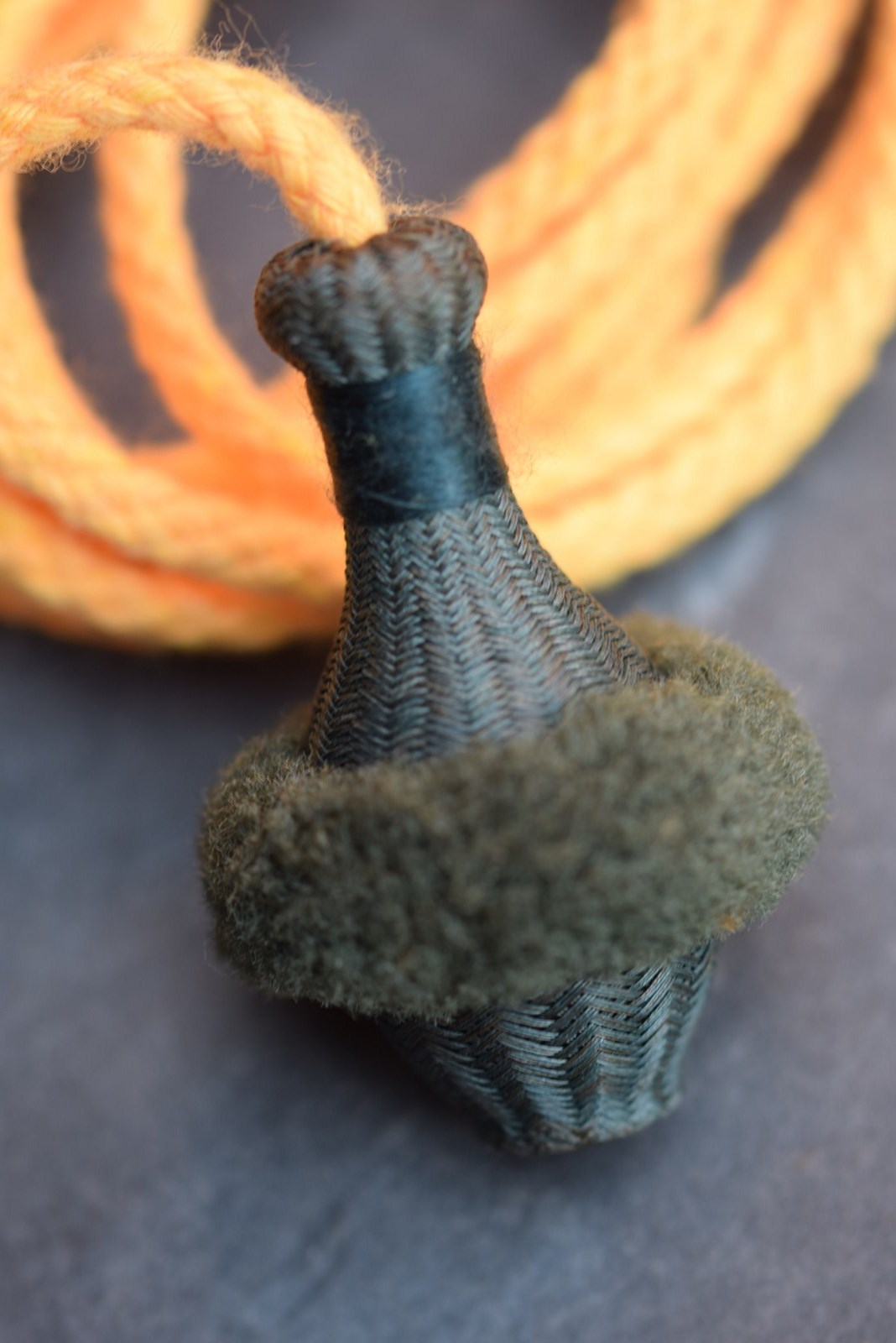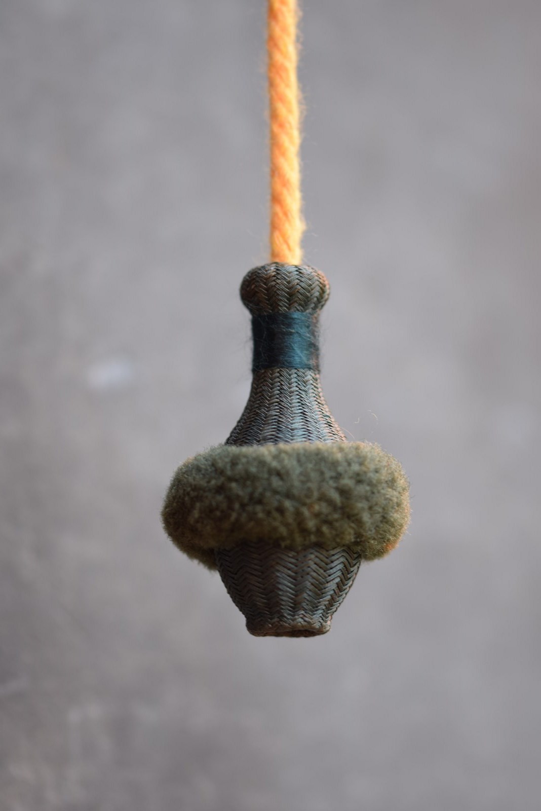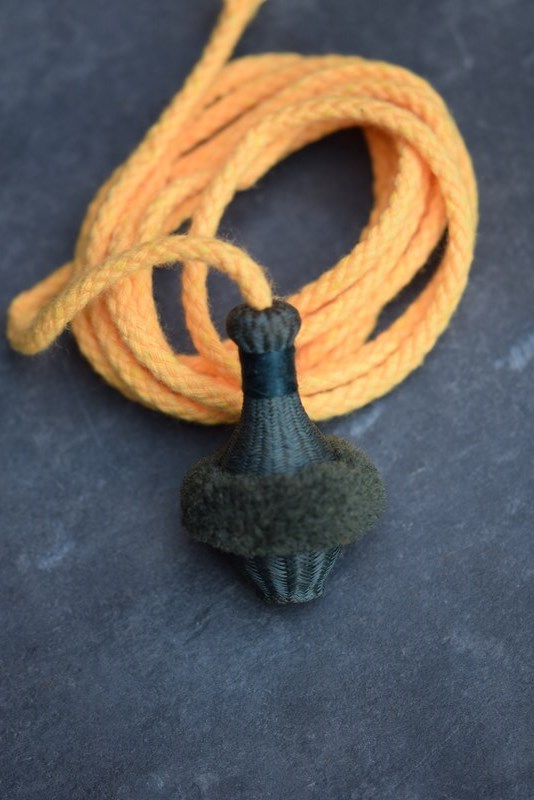 Extremely Elegant Vintage Dark Green Woven Fabric Light Pull & Yellow Cord (Cord Is Brand New). Good condition & of very high quality. Tight woven herringbone design with a soft surround wall bump. The pull is 2.5 inches in height, with a maximum body diameter of 1.75 inches. The cording is good quality soft braided yellow cotton, 2 metres in length. Sale includes UK inland tracked delivery. Returns are happily accepted.