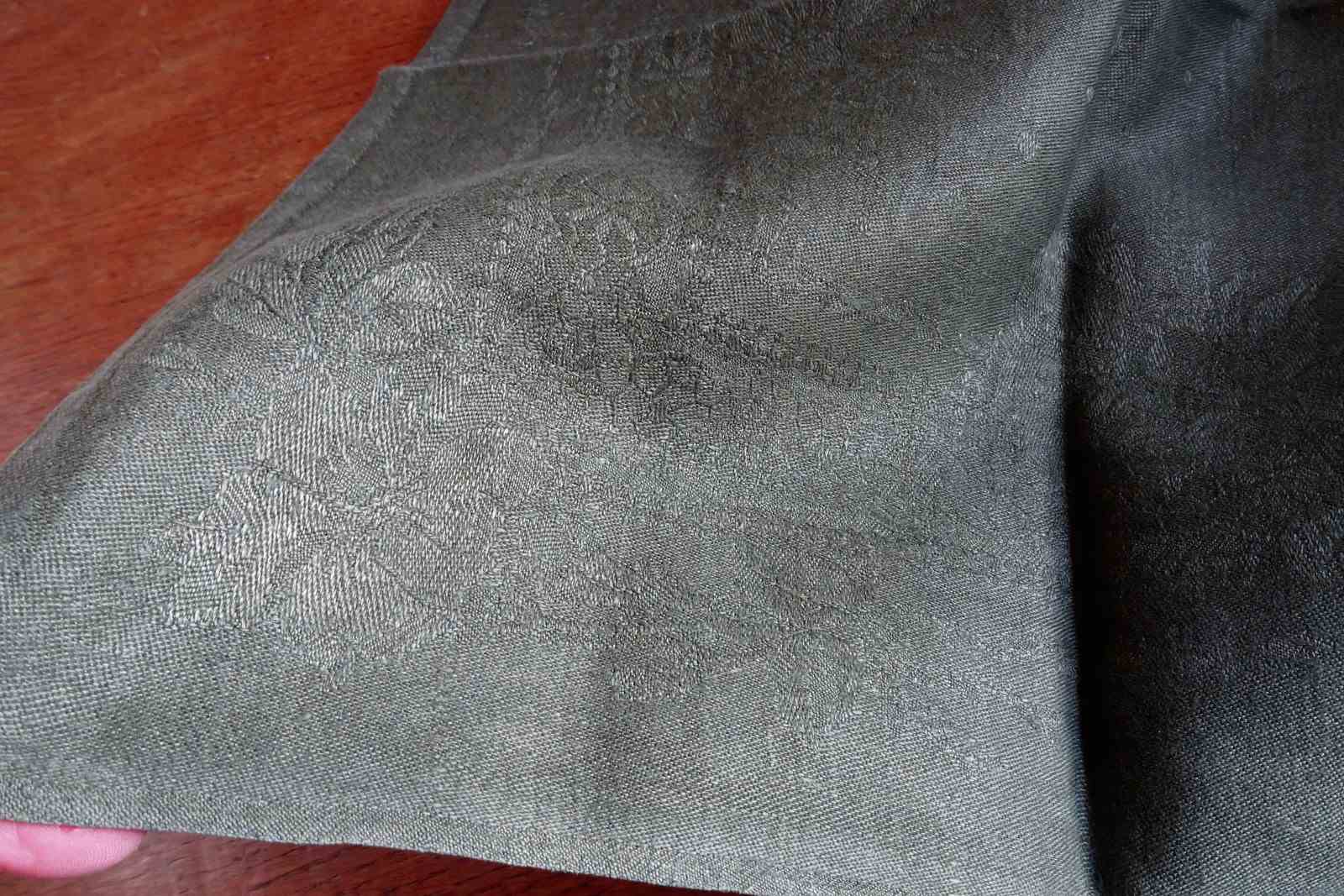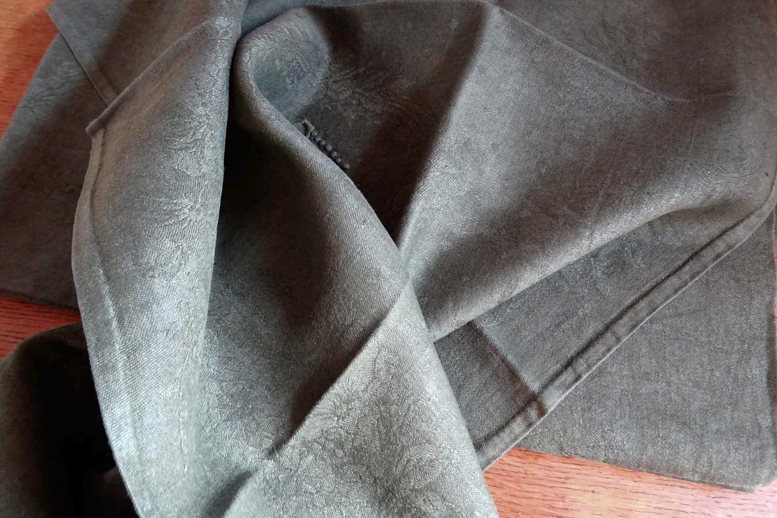 12 Hand Dyed Linen Damask Napkins; Dark Olive