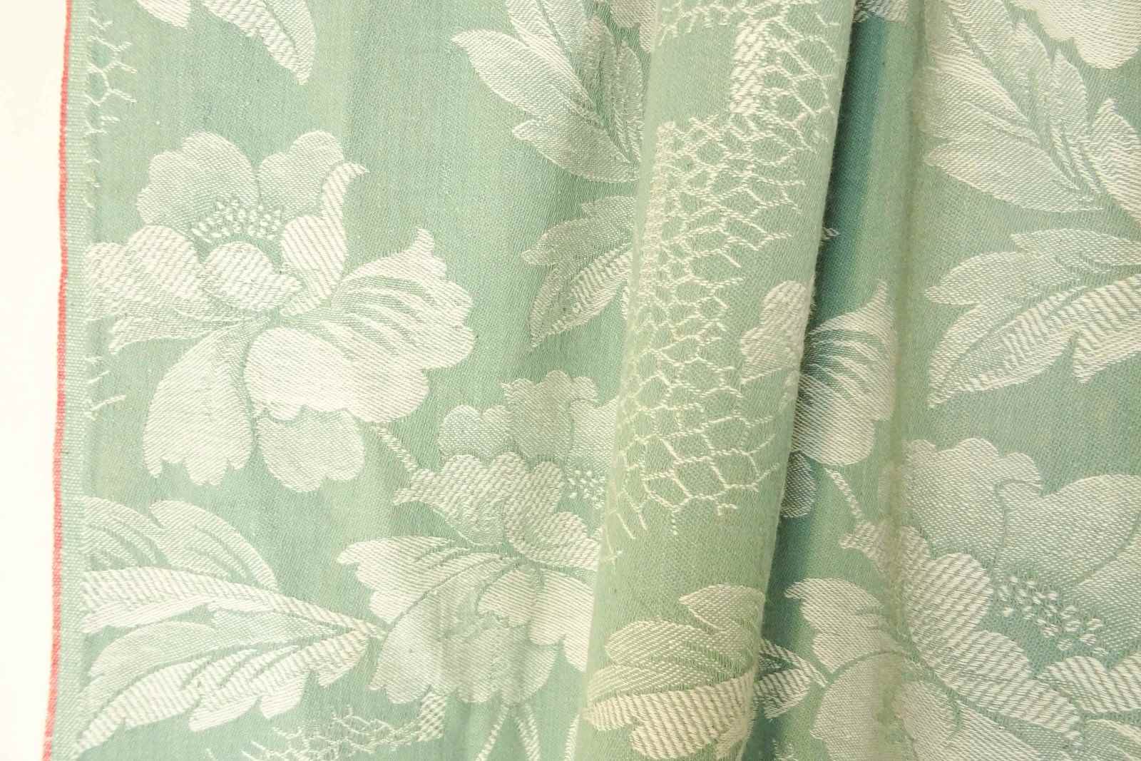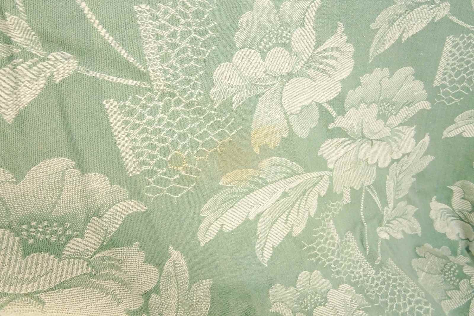 Large piece of vintage French sagey green and grey/white damask ticking fabric that was used to make mattresses (very smart mattresses!).