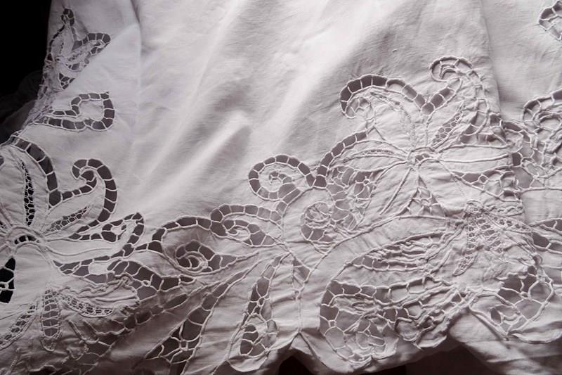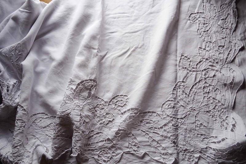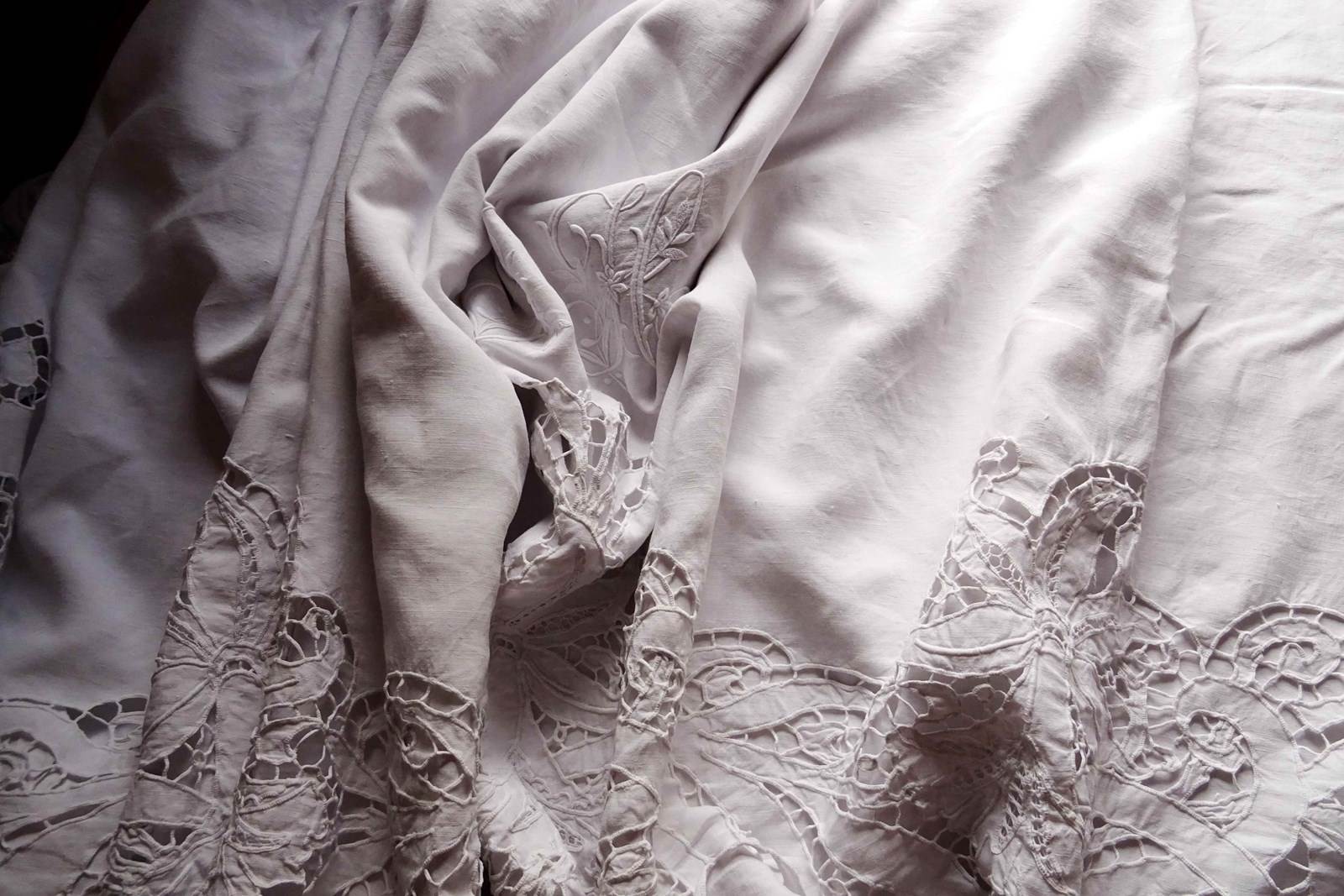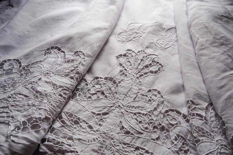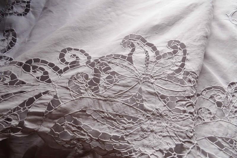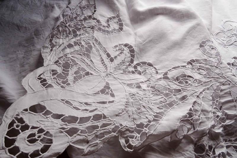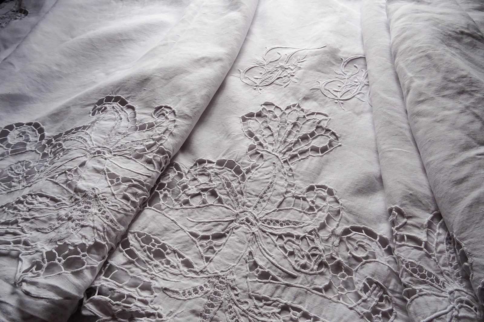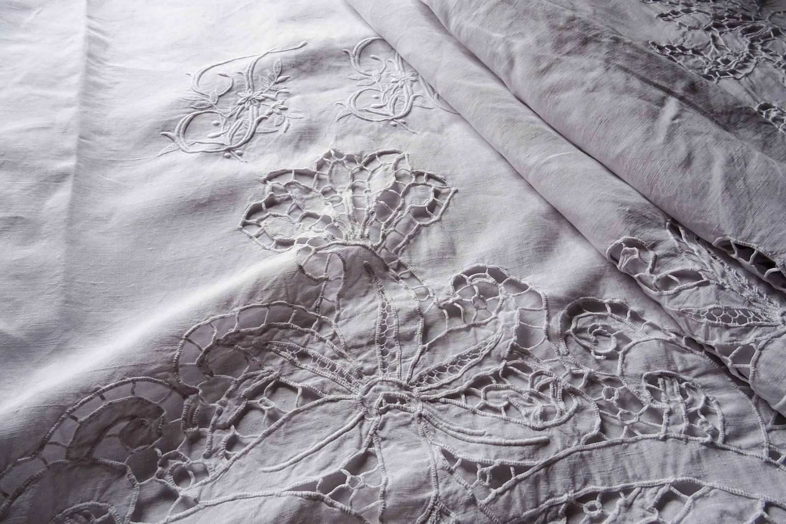 What can I say? You really do not find sheets like this very often these days. This is a fabulous highly decorative and huge pure linen sheet. Heavenly to sleep under of that there is no doubt; but also it will make quite the statement as a voile curtain.