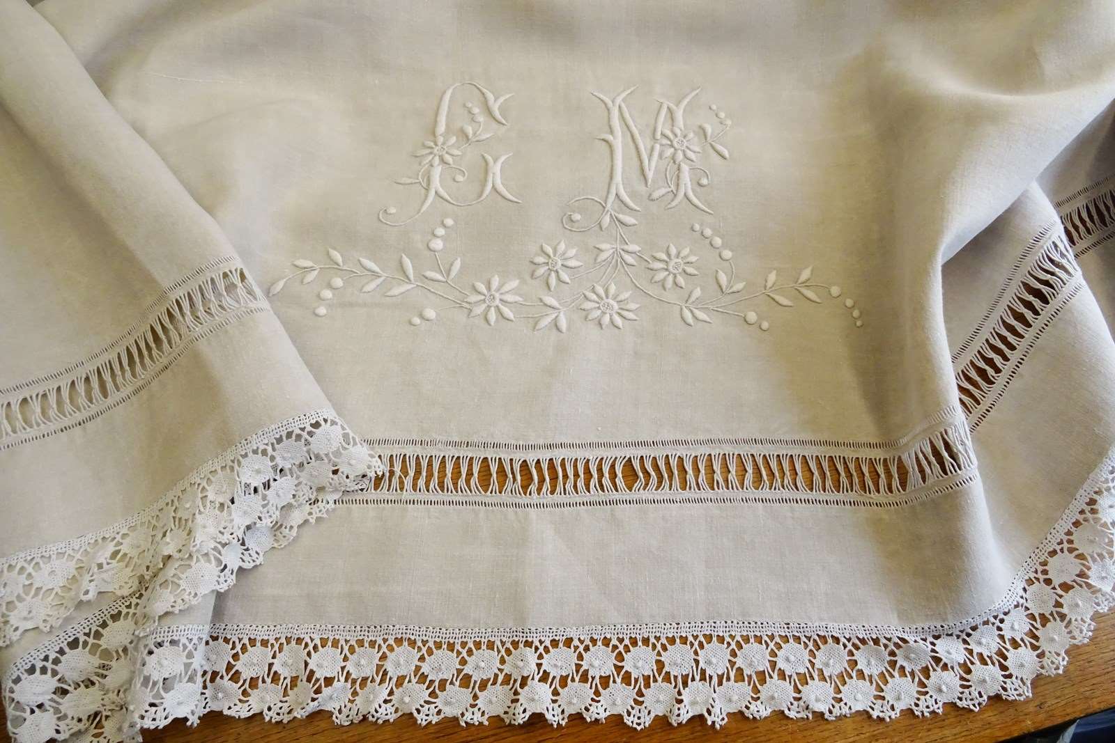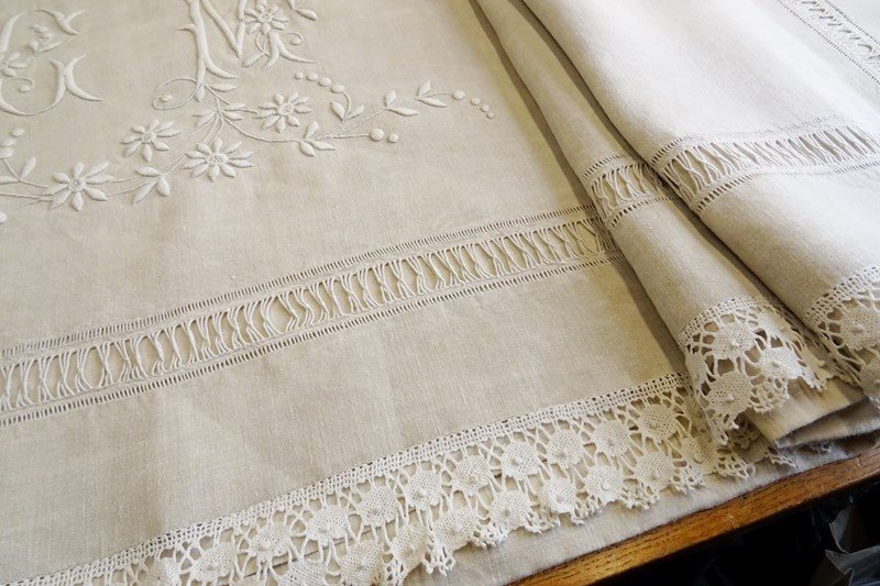 This is a fabulous sheet, it dates to the very early 1900s and yet has barely been used. But now its time has come, it'll be a wonderful sheet to sleep with, sweet dreams guaranteed I think.
