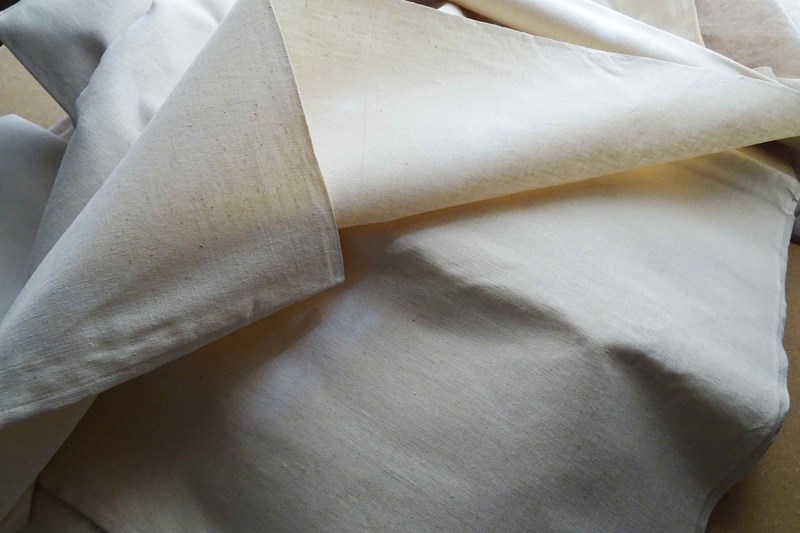 These are all totally unused, unbleached, never laundered "dead stock" pieces which will need a soak and a few washes to fully soften up but will give you masses of good fabric for your bed or your projects. Colour is a sandy cream which will lighten with washing. Don't worry, I will send washing instructions with purchase.