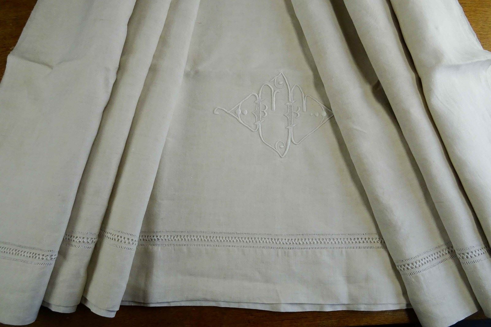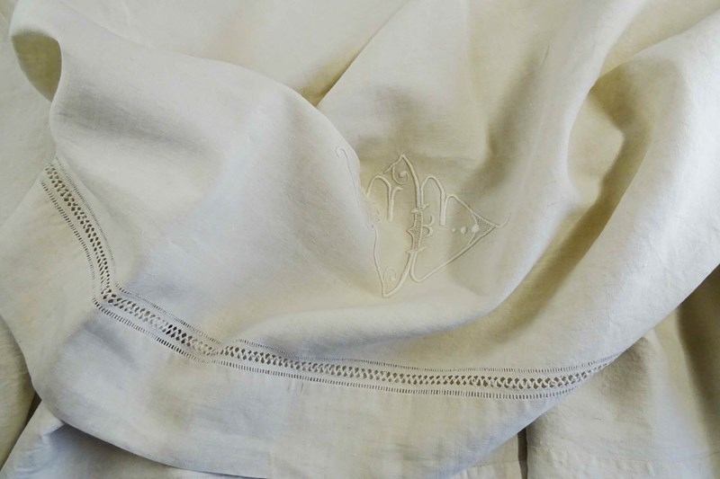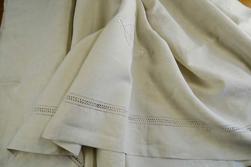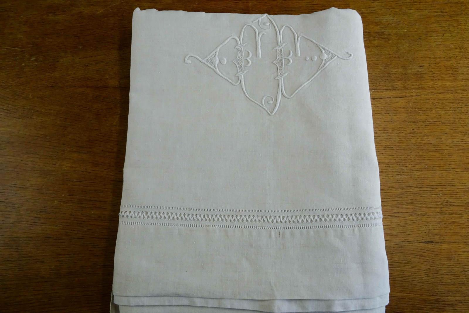 A beautiful large vintage French pure linen sheet - a delightful find and a stylish piece.