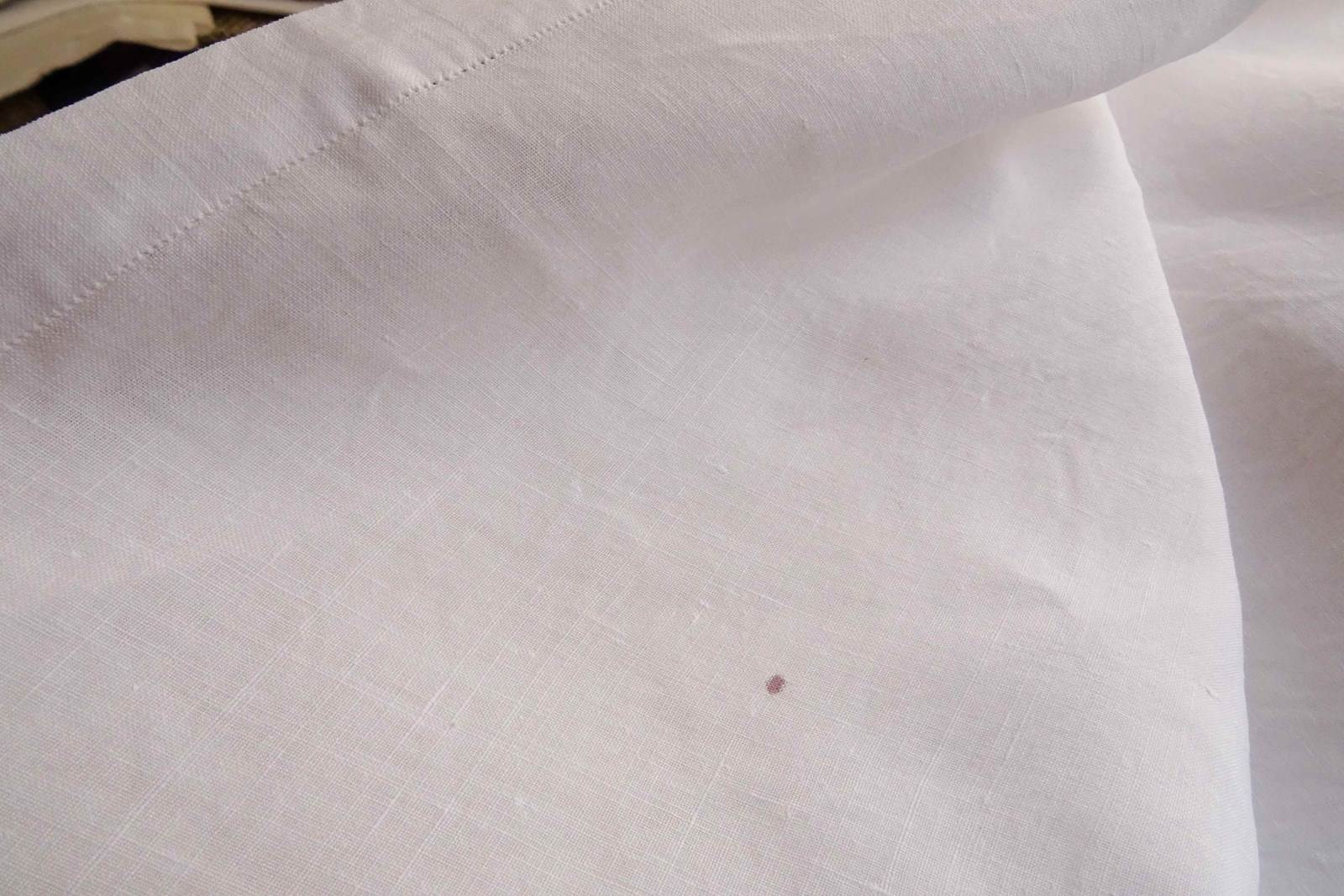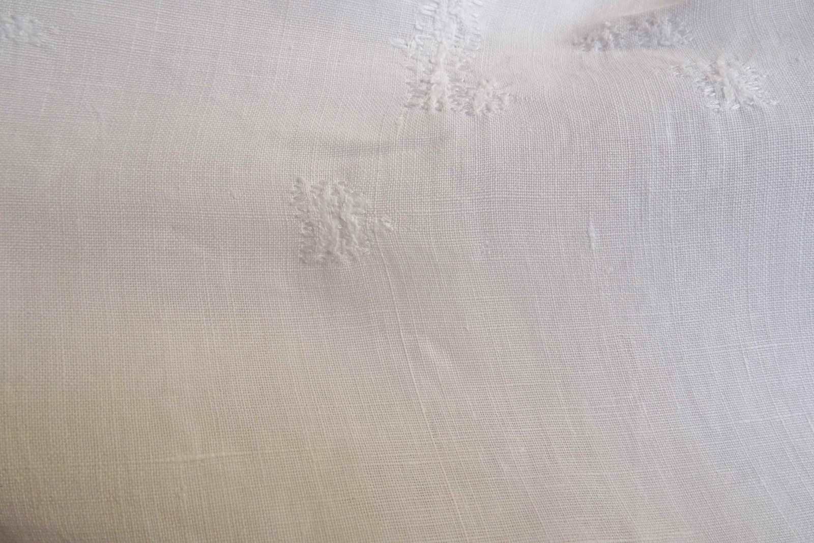 There are small darns scattered about and one group of darns as shown. In general the linen is strong and I'd be using it as a sheet with no reservations. The fine linen does often have small repairs in it; just part of the life of a vintage piece. Price accordingly, of course.