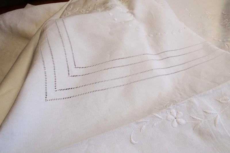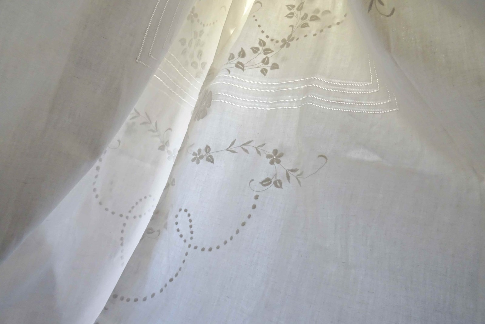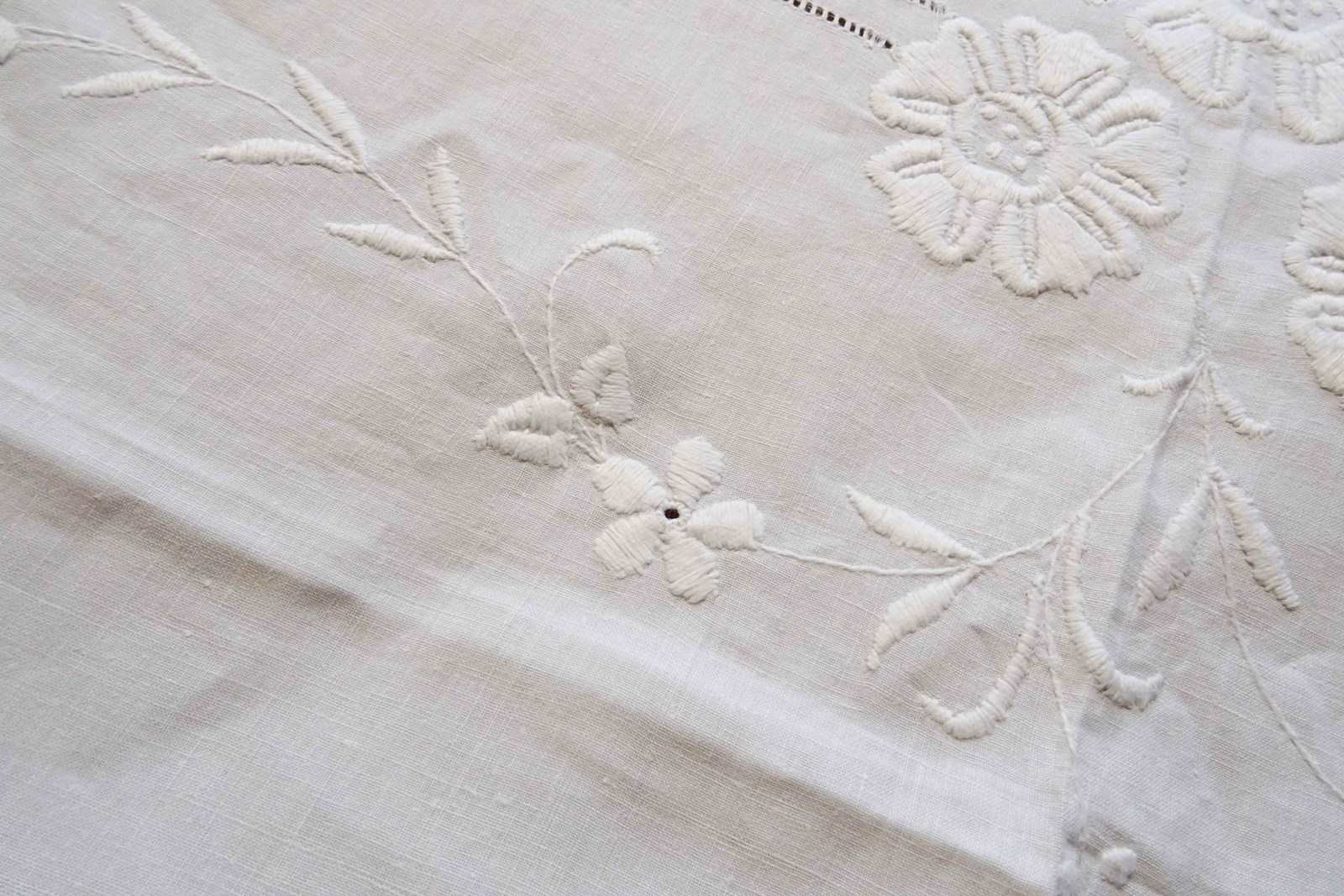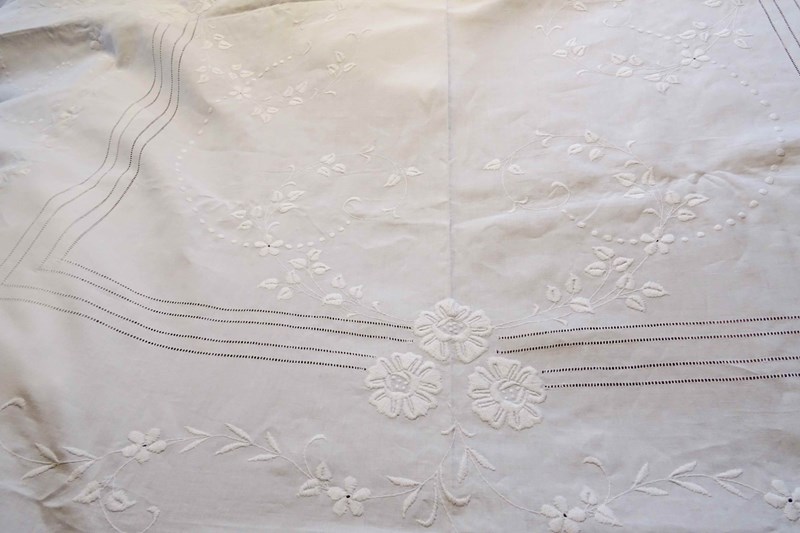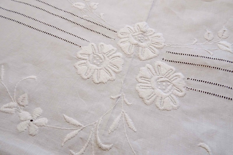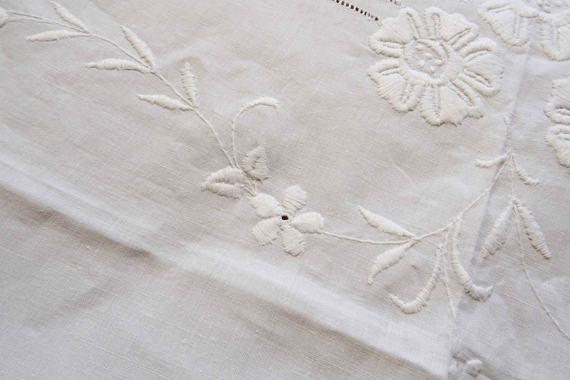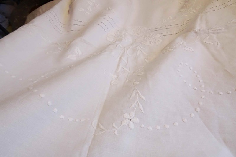 Embroidered White Linen Bedspread Or Voile Curtain