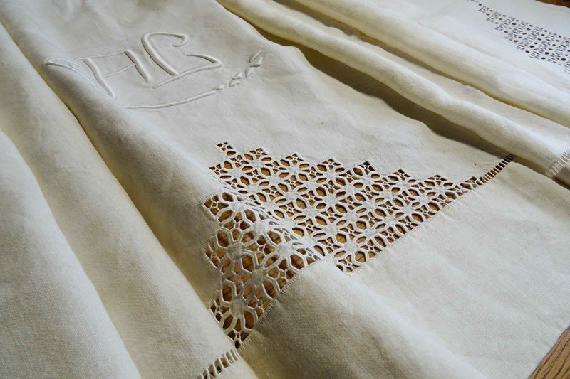 Not the whole sheet I'm afraid but this piece can be put to so many uses. It is the decorative hand stitched top end of a vintage French pure linen sheet. Central monogram of the letters AC with very intricately worked drawn thread decoration; this is quality workmanship.