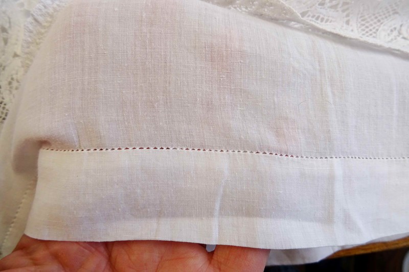 This sheet has one of my favourite details, something that speaks of a top quality piece - the bottom hem is finished with a very fine drawn thread hem which takes considerably longer to create than just a standard turned hem. And yet it would most likely only be seen by the maid.