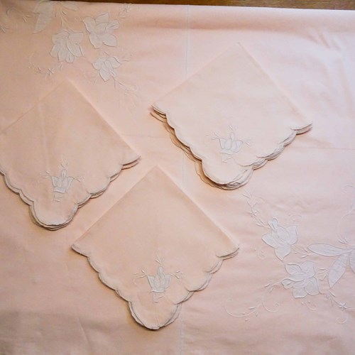 Excellent Linen Damask Tablecloth And 12 Napkins