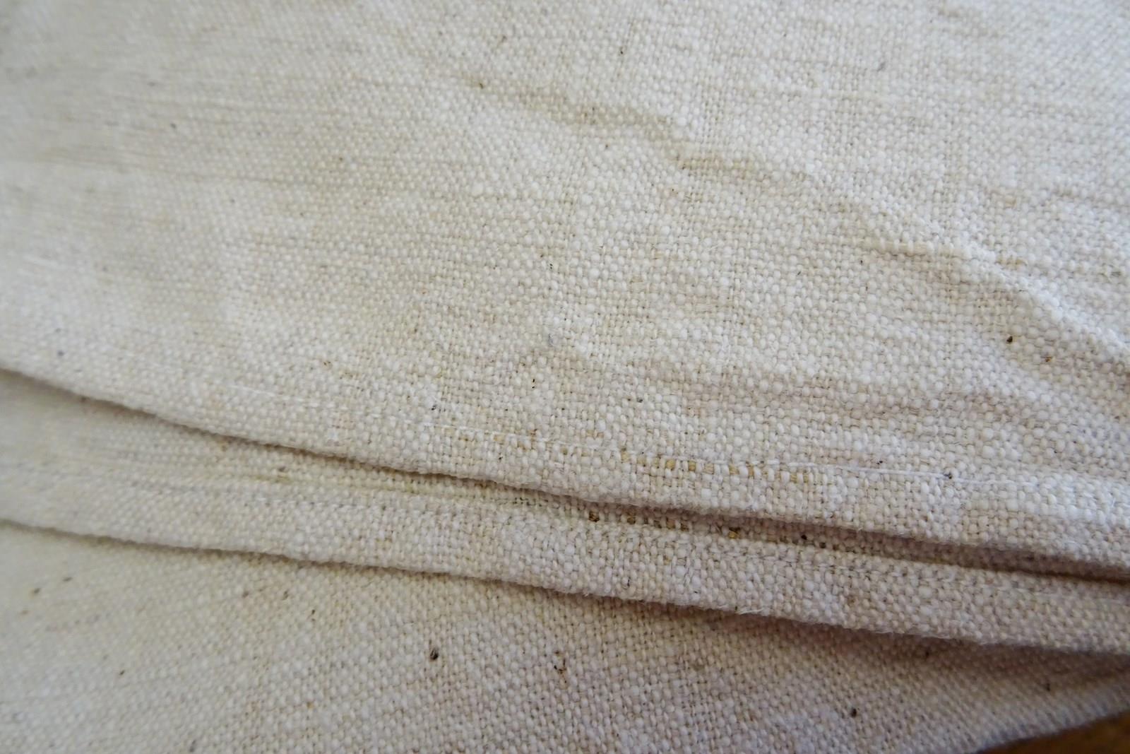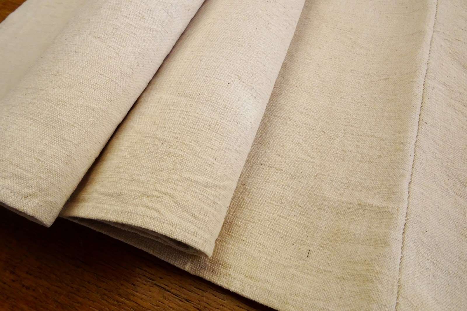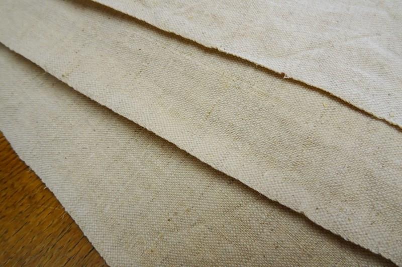 Very nice interesting fabric with little flecks in the weave. It's a sturdy fabric for sure but not uncomfortable (although not really what we would used as bedding nowadays), it'll be great for upholstery or curtains, blinds, a bed cover, tablecloth; the list goes on.