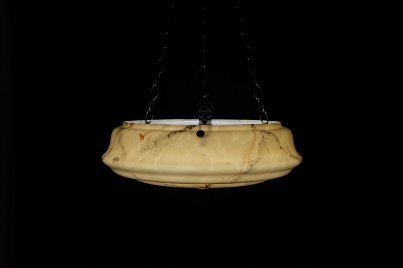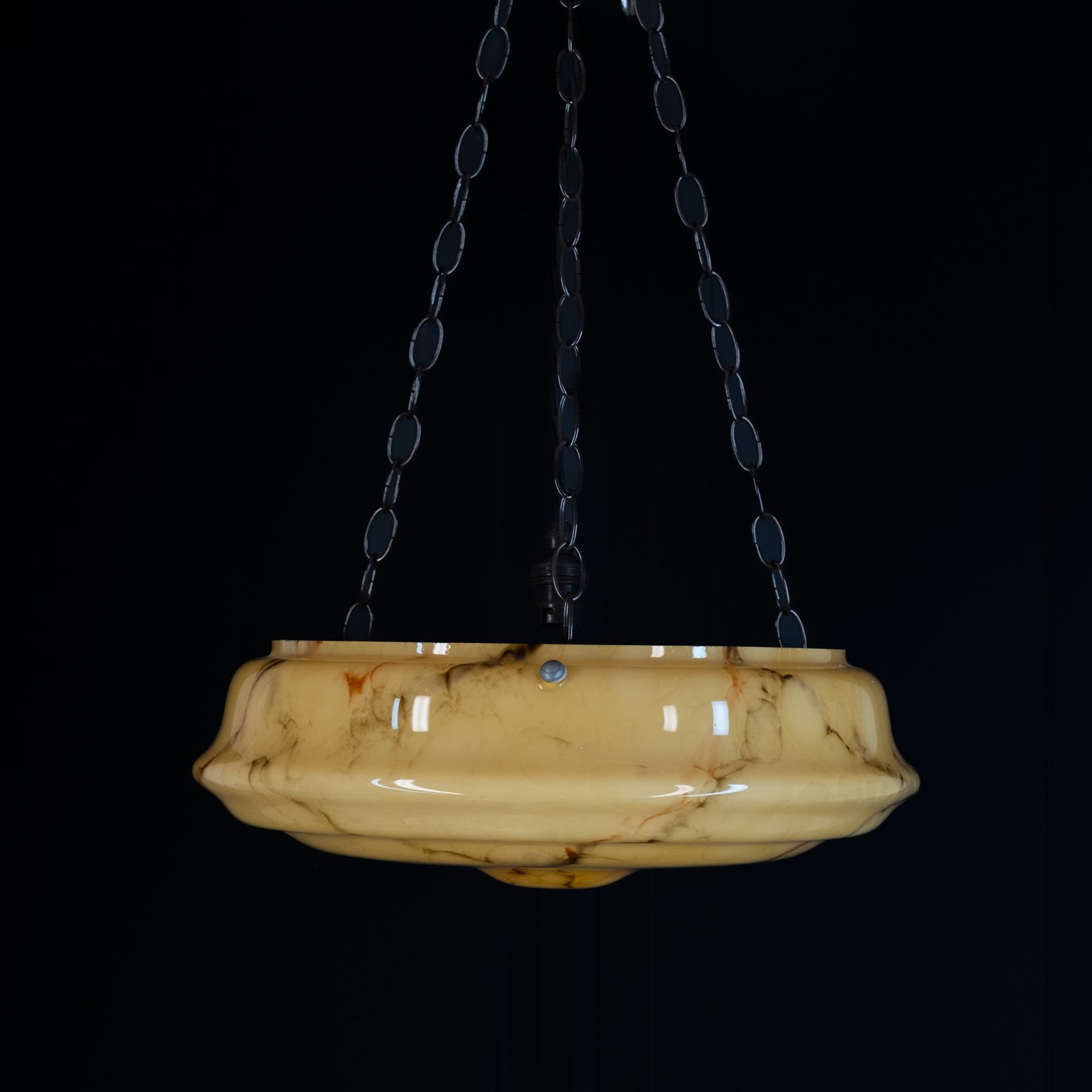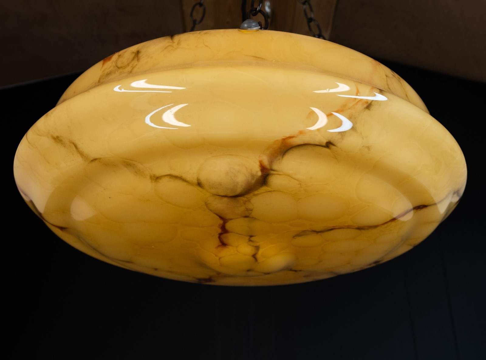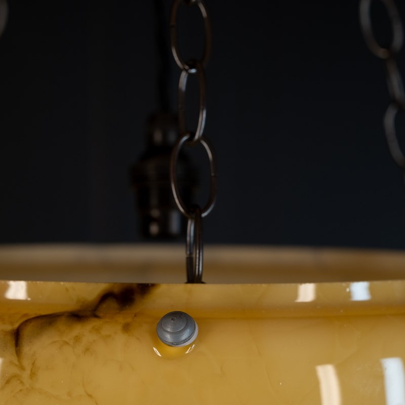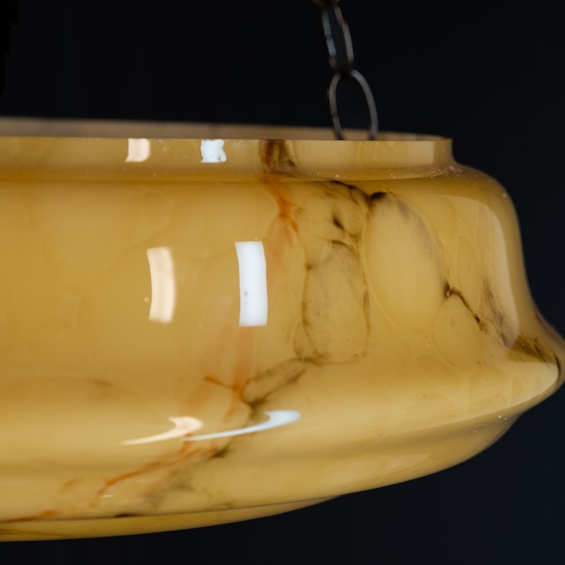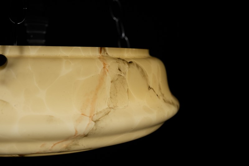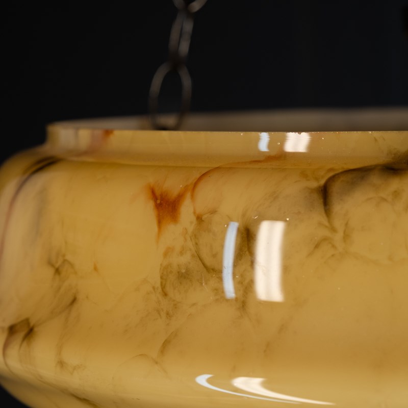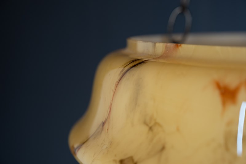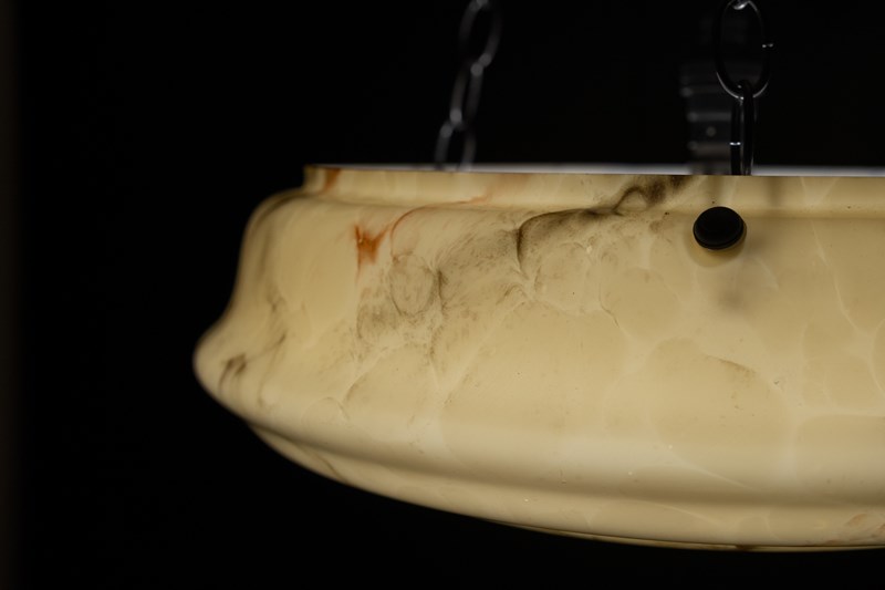 A large French marbled glass "plafonnier" (ceiling light!). Supplied with new chain, ceiling rose, bayonet cap bulb holder and wiring, ready to be installed.