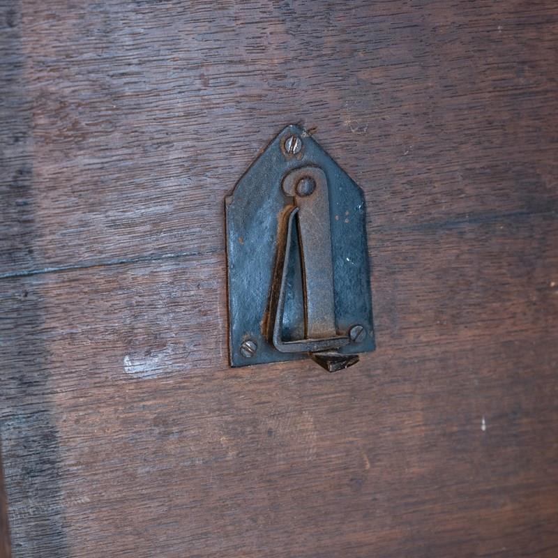 Iron tilt mechanism in good working order, the table is sturdy and ready for use. A great little breakfast table.