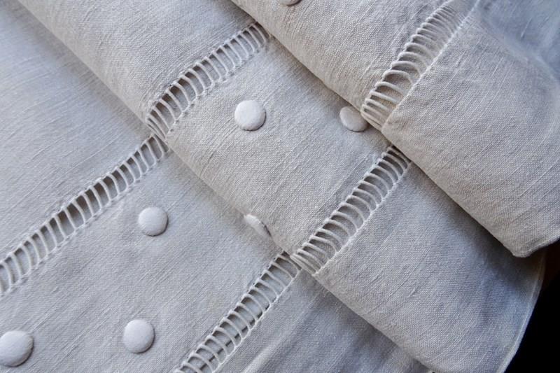 A gorgeous tablecloth or bed cover. Colour is a pale putty-white.