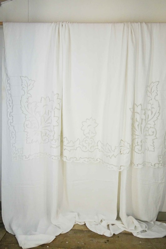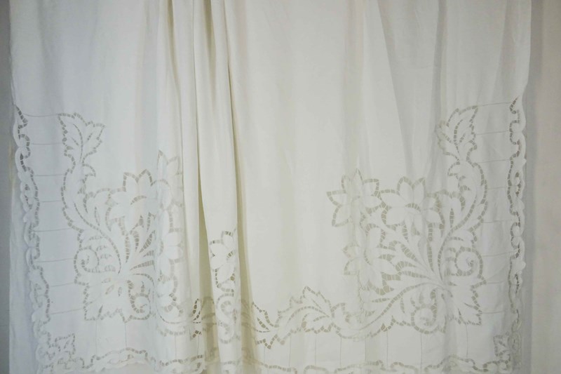 Highly Decorative Huge White Linen Sheet Or Curtain