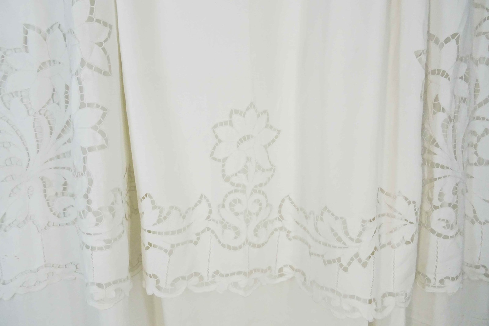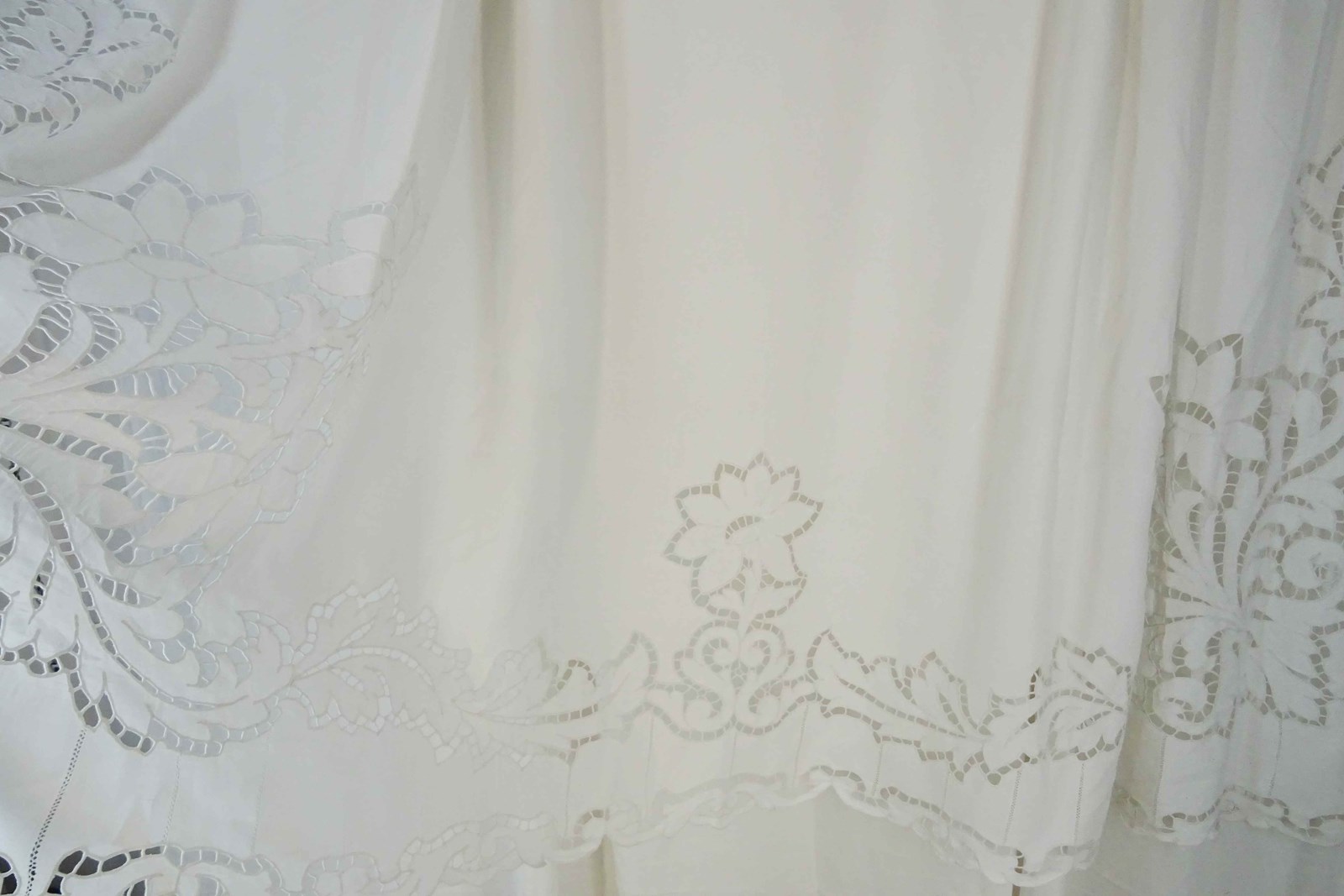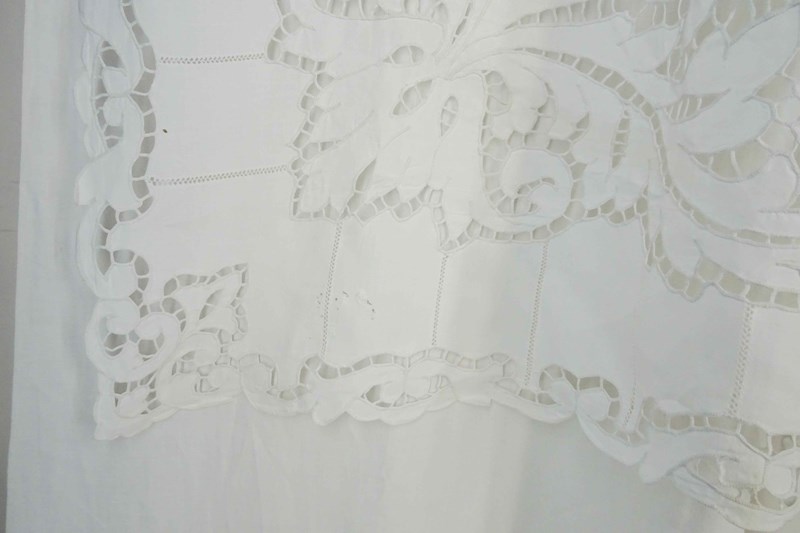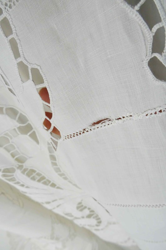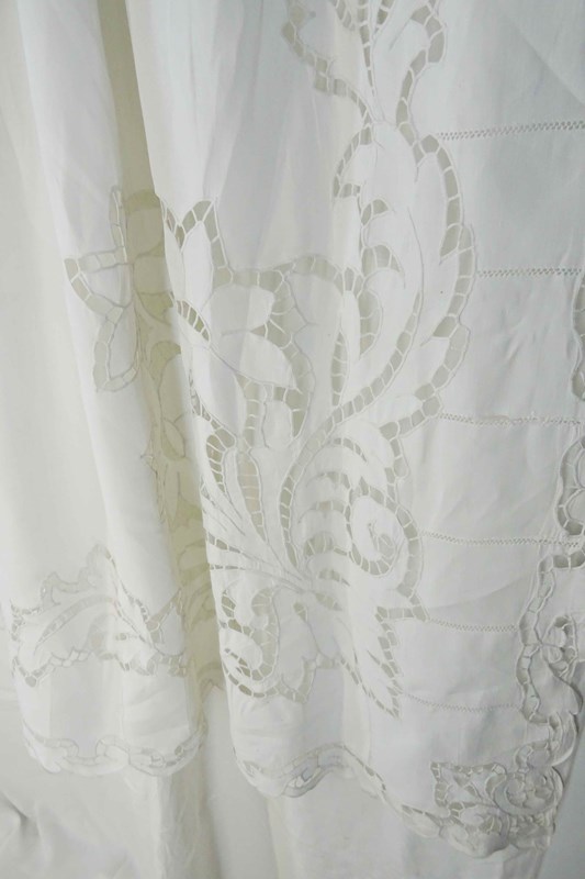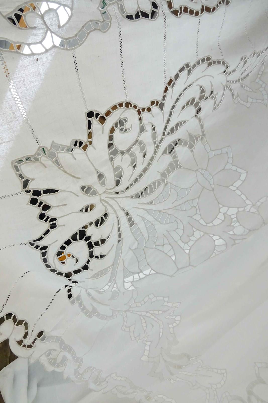 What can I say? You really do not find sheets like this very often these days. This is a highly decorative and huge pure linen sheet with an elaborate deep cutwork border which is of course all stitched by hand.