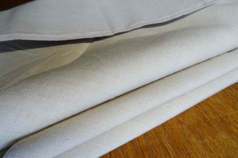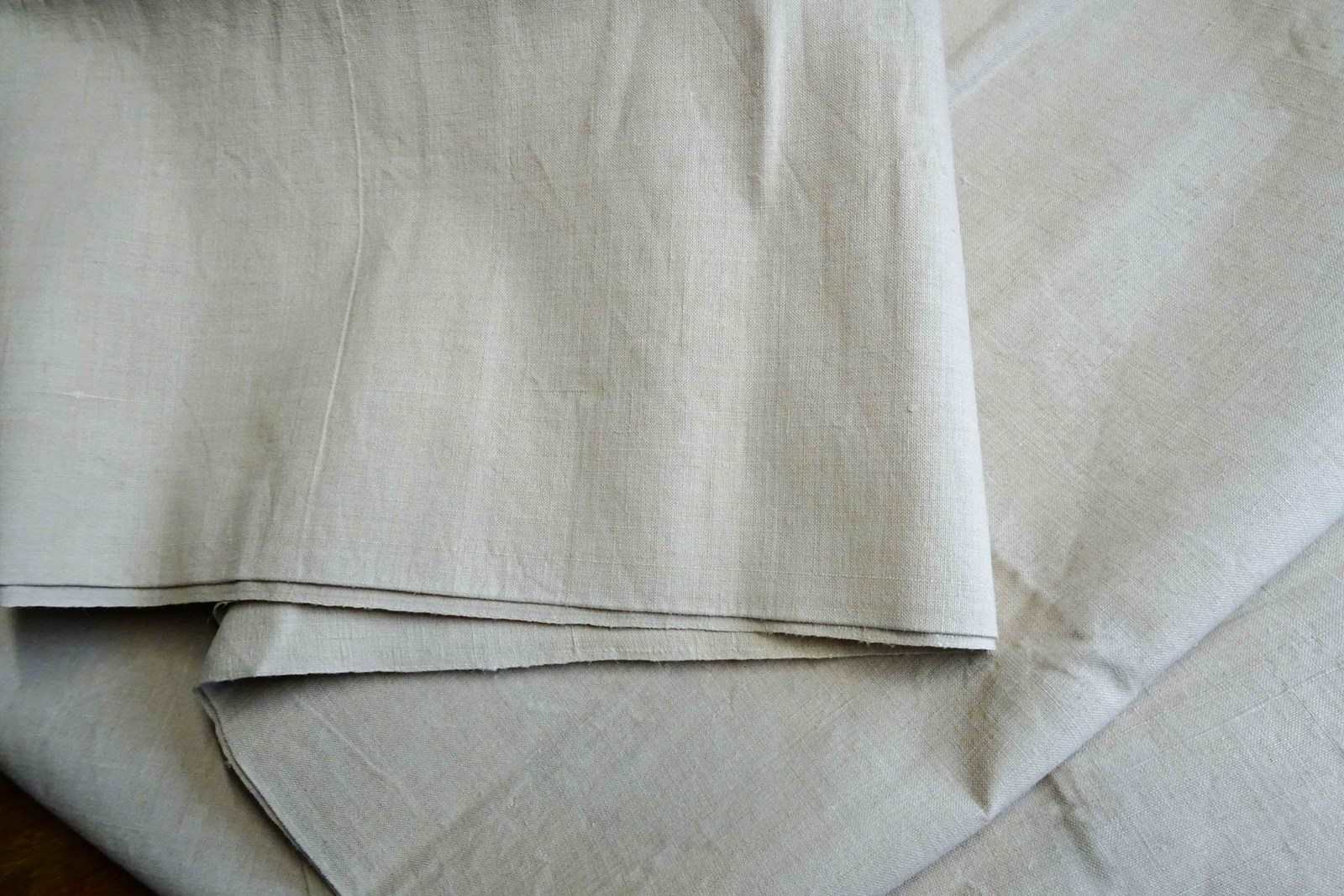 Huge piece of unused early 20th century French heavy linen sheeting fabric. This is amazing heavy, sturdy stuff - yes, it was originally intended to be used on a bed but really this will come into its own to use for upholstery, blinds or curtains.