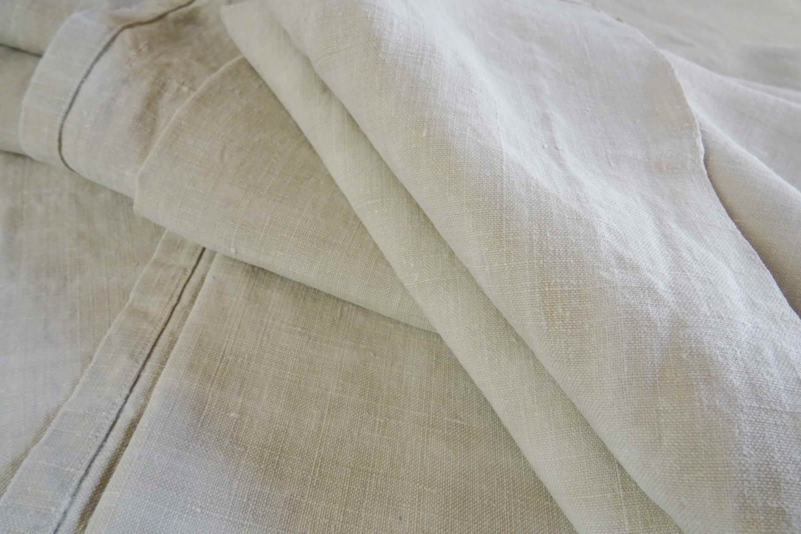 You can't beat the feel of these gorgeous turn of the century linen sheets; they've been laundered for 100 years and feel so smooth. The fabric has a lovely character to it with little slubs in the weave and of course it drapes beautifully for curtains or blinds. Or can of course be used as a sheet, the fabric is comfortable.