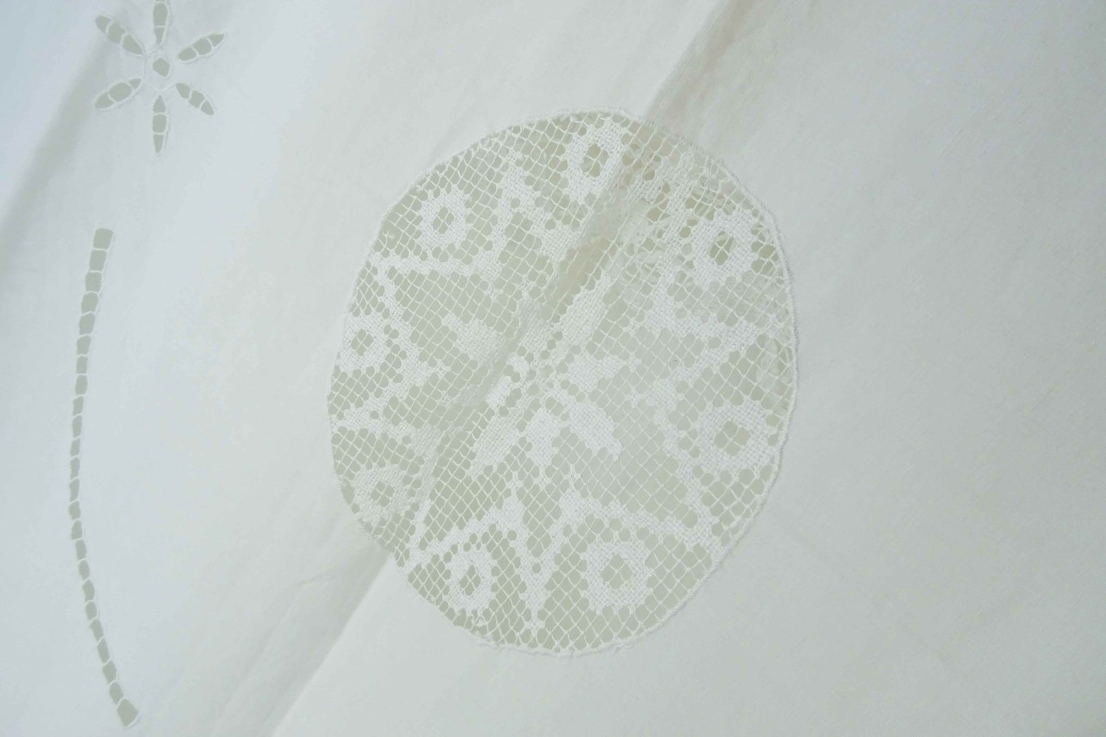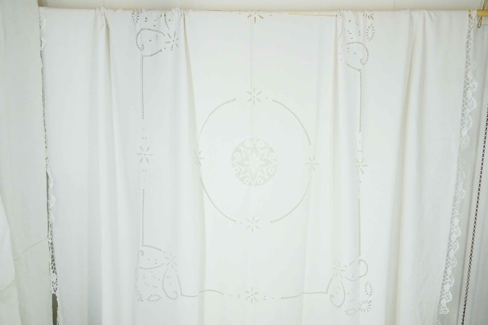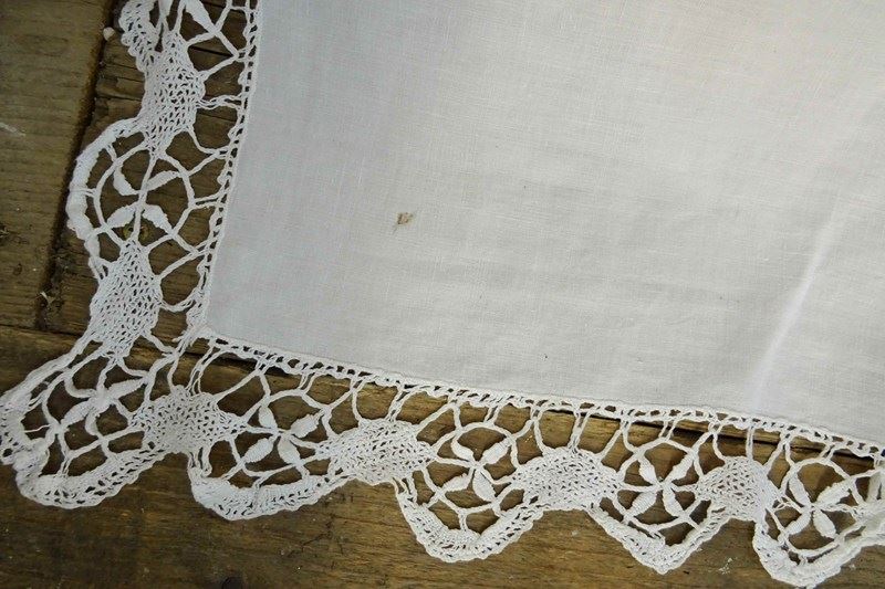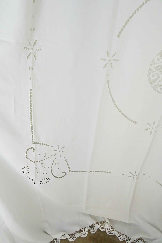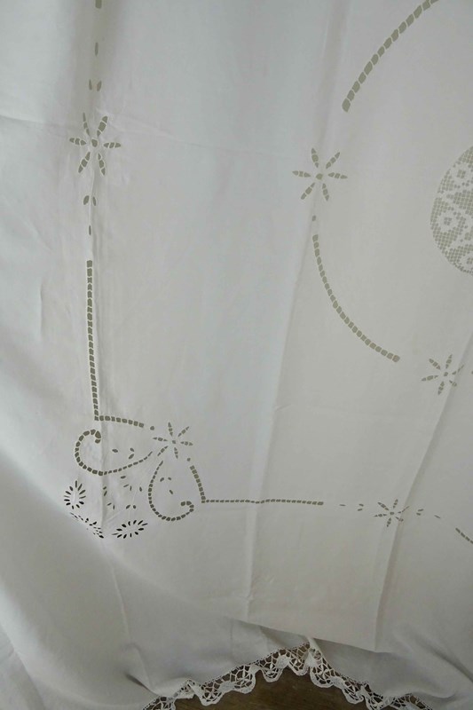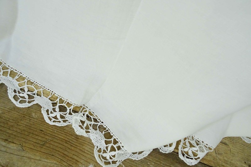 Lace Edged Linen Bedspread, Tablecloth, Curtain