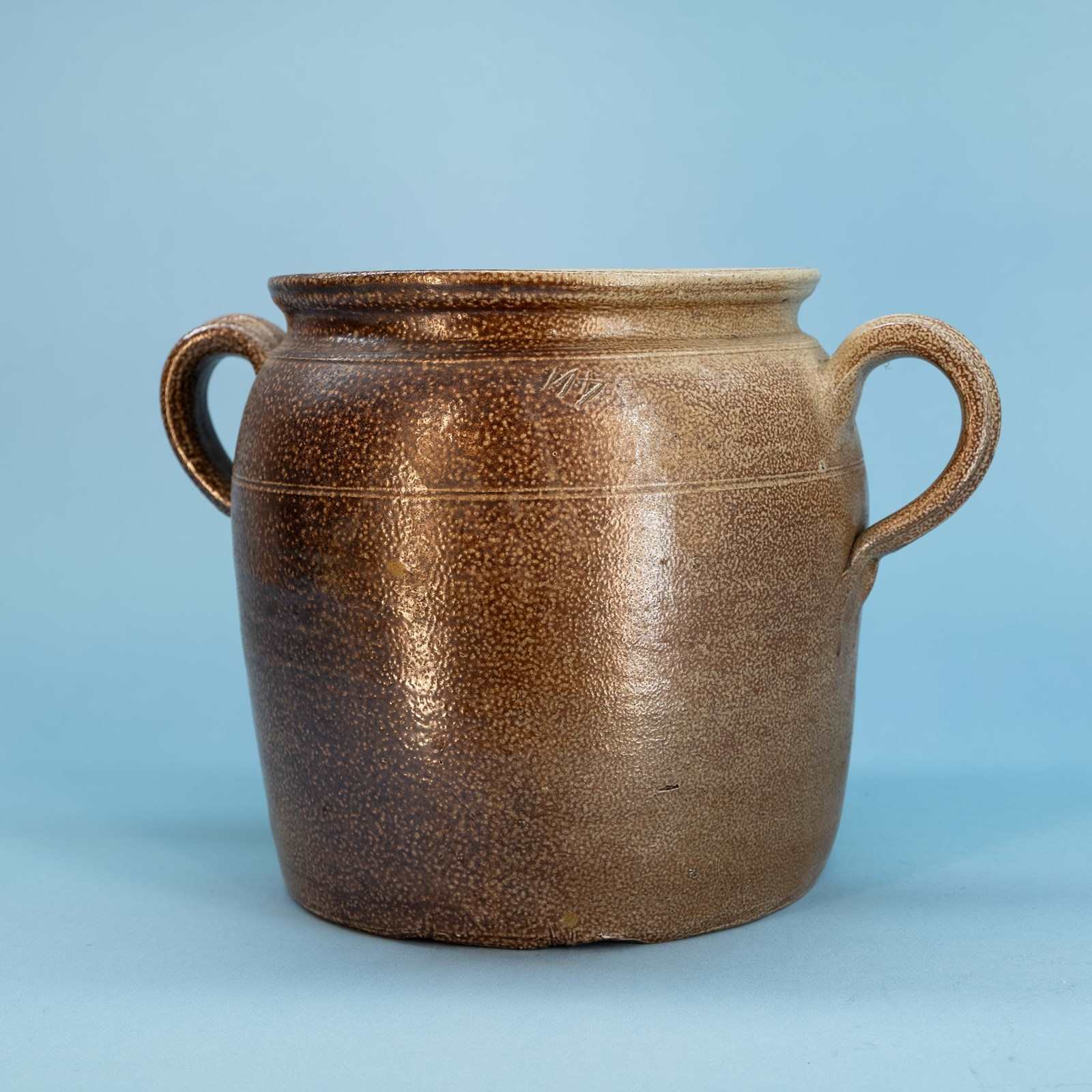 A lovelyl mottled glaze and big ear handles make this my fave of the current batch of confit pots!