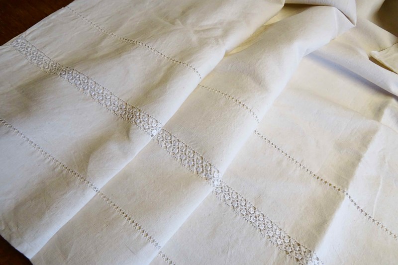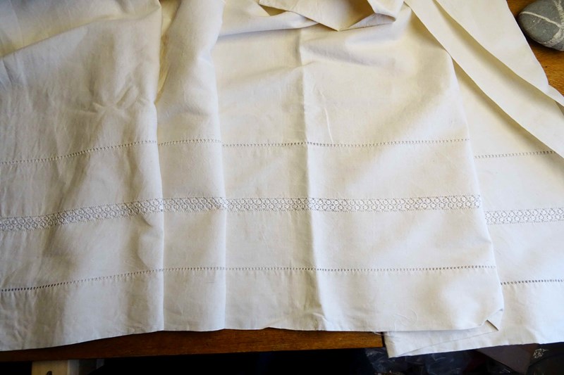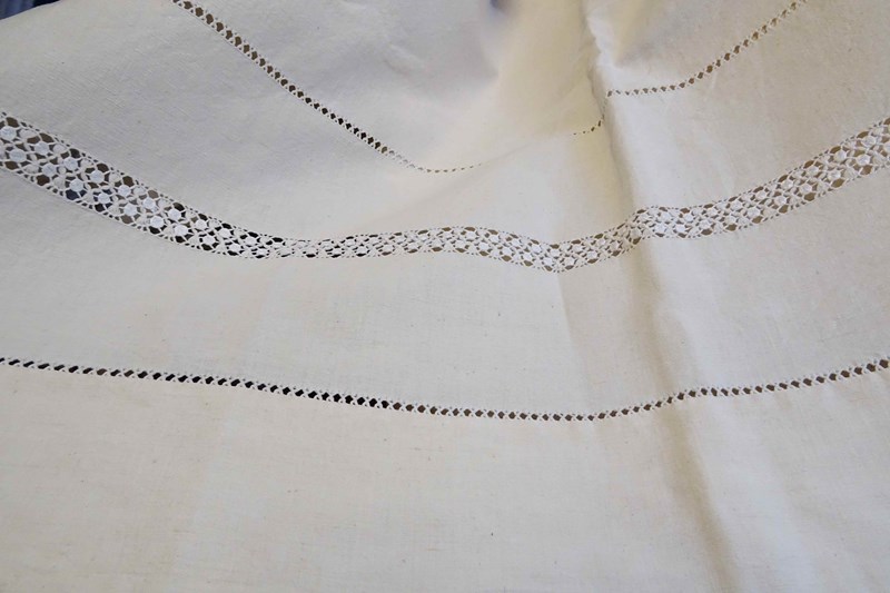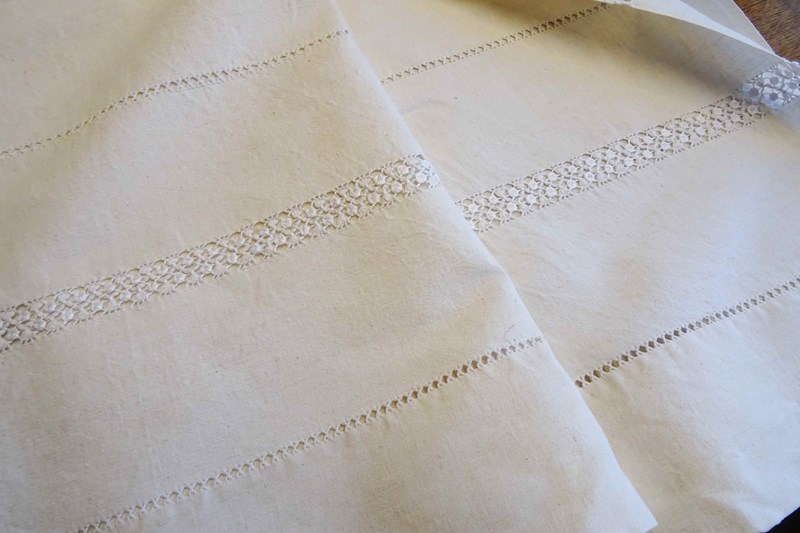 This is lovely sheet; simple linen with some nice little slubs and character to the weave and with a softness too. But it is the intricately worked triple ladder hem that sets this apart, it's such an attractive detail and will look so pretty on a bed - or of course as a curtain or blind.