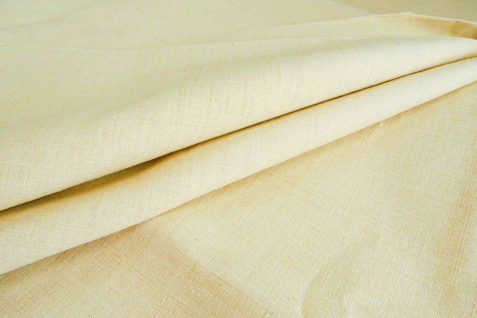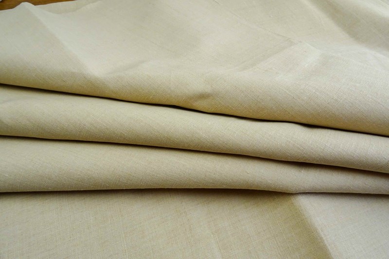 It is tightly woven fabric but not too heavy/thick. I like to use it for all sorts of interiors/soft furnishing projects, it adds such character to a space. Although this has been stored for 100 or so years it is predominantly clean and sections could be used without washing. Or soak and wash to soften the fabric and lighten the colour.