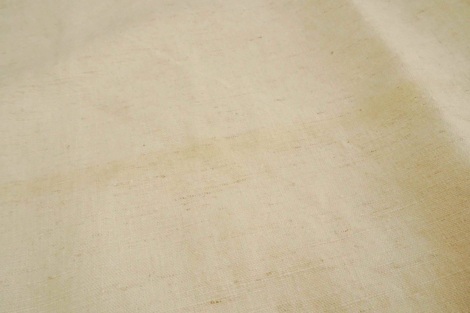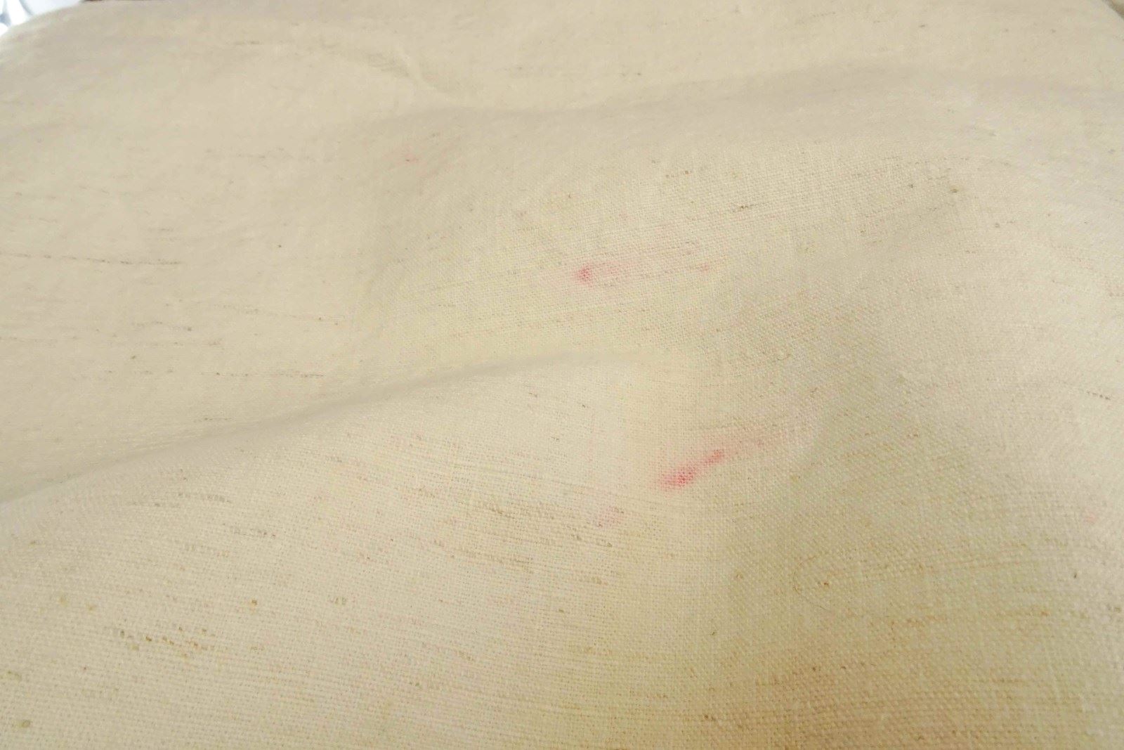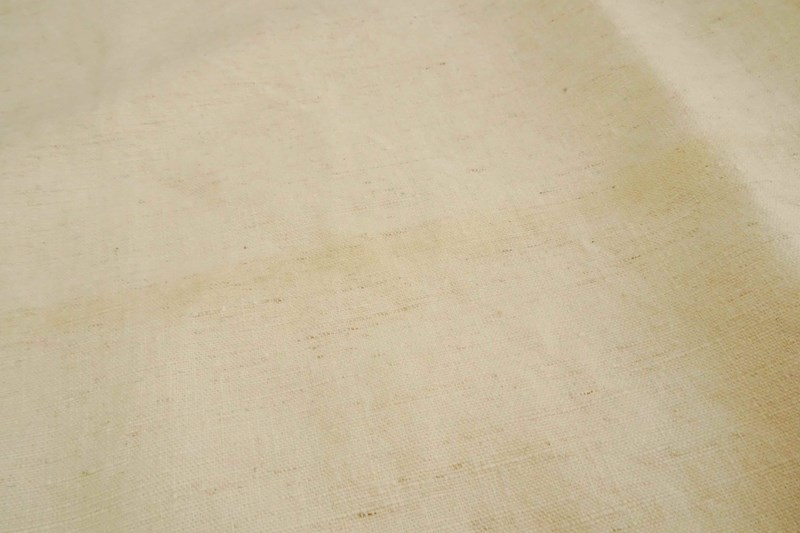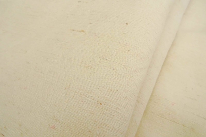 In excellent condition with no thinning, wear or damage. Freshly laundered. A little group of pale pink marks and three or four little blue dots. Faint line of storage marks remaining; this will fade away completely in the next couple of washes.