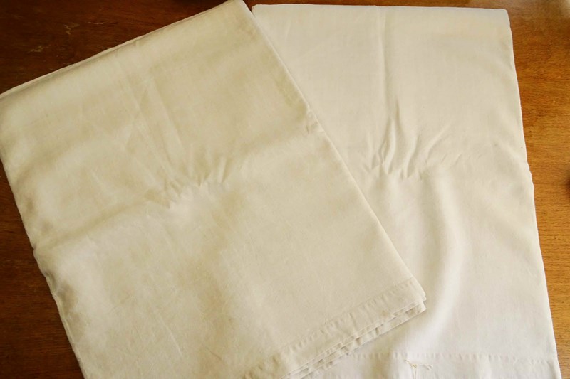 Just beautiful simple linen sheets with hand stitched hems. Really charming; gorgeous fabric. A pale creamy putty colour which is very attractive. One sheet is just a very tiny bit darker than the other; one or two hot washes should bring the colour up to match but really, the difference is minimal.