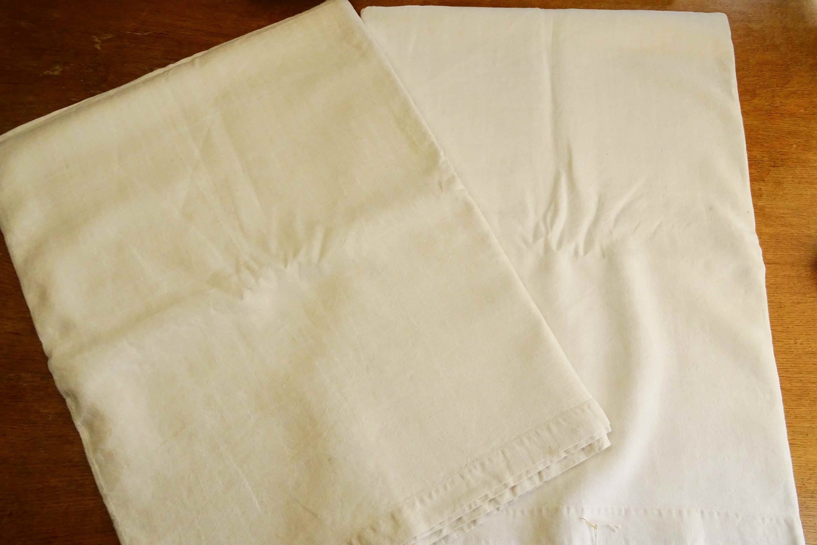 These are beautiful! A pair of plain, simple country style floppy antique French linen sheets. They'll hang perfectly as a gorgeous pair of unlined curtains or can be made into lined or interlined curtains or blinds. Or used for light upholstery. Or you could use them as sheets, if you like slightly rustic bedding.